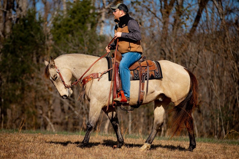 ⚜️ 𝓗𝓮𝓻𝓲𝓽𝓪𝓰𝓮 𝐖𝐢𝐧𝐭𝐞𝐫 𝓒𝓵𝓪𝓼𝓼𝓲𝓬⚜️ Happening now thru MONDAY | DECEMBER 29th - Available EXCLUSIVELY on HorseBid's website! For more details and to register visit: www.Horsebid.com CONSIGNOR CONTACT: J&S Livestock 931-242-7226 or 931-698-7159 LOCATION: Santa Fe, TN BREED: Quarter Horse REGISTERED: No REGISTERED NAME: Bruno COLOR: Buckskin HEIGHT: 15.1 AGE: 11 GENDER: Gelding Meet Bruno an absolutely gorgeous, gentle 11 yr old buckskin gelding standing 15.1hh, and the true definition of steady and kind. Bruno is very well mannered and it shows. He has an excellent temperament, plenty of training, ranch work experience, and the type of kind and gentle nature that’s truly hard to find! He is built correctly- big boned and built to last. He genuinely loves being around people and soaking up all the attention you could possibly give him. Bruno is a very confident ride. Whether you’re out on the trails, riding next to roaring farm machinery, working cattle, or riding through the busy downtown city traffic, he’ll always take care of you. He is use to ranch work, pushing cattle, pasture roping, checking fences, etc. As for the trails, if asked he will safely take you up or down some sketchy terrain with nothing but patience. He isn’t going to spook at wildlife, dogs, or even angry bulls out in the pasture. He handles it all calmly and sophisticatedly. Bruno is so honest and full of try. He will be just as confident solo as he is in a group, which makes for such a worry-free ride! Smooth, safe, comfortable, and responsive are a couple of the things that best describe Bruno’s qualities. He has a nice stop, comfortable steady trot, and smooth lope. On the ground Bruno is super easy to catch, hauls and loads like a pro, stands patiently to be groomed or bathed, and is also great for the farrier. He always has the best attitude- quiet, yet athletic and is always up for a challenge. If you are looking for the most kind-hearted gelding with actual real-life experience, then look no further than Bruno! Bruno is 100% sound and recently passed his PPE which is pictured above. For any further info please feel free to reach out at anytime- Bailey 931-242-7226 or JT 931-698-7159