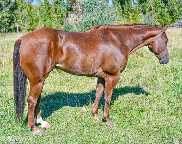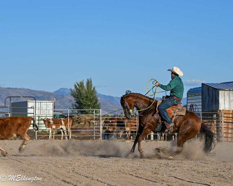 🍂 𝓐𝓾𝓽𝓾𝓶𝓷 𝑨𝑳𝑳 𝑺𝑻𝑨𝑹 𝑳𝑰𝑵𝑬𝑼𝑷 🍂 Happening now thru MONDAY | OCTOBER 6th - Available EXCLUSIVELY on HorseBid's website! For more details and to register visit: www.Horsebid.com CONSIGNOR CONTACT: 4 Spades Ranch 208-705-6540 LOCATION: Rigby, ID BREED: Quarter Horse REGISTERED: Yes REGISTERED NAME: GB Hickory Boon 2015 COLOR: Sorrel HEIGHT: 15.2 AGE: 10 GENDER: Gelding Crown is a 10-year-old, solid-as-a-rock gelding—the kind of horse that shows up every single day. Standing 15 hands, he’s done it all: heading, heeling, ranch work, hauled to World Series, team ropings, junior rodeos, jackpots, and the nightly rodeo. Crown fits a wide variety of ropers because he is forgiving and easy to ride. We’ve gathered bulls and cows on him, hauled him to state parks to watch the elk bugle, and even used him as a pick-up horse for the junior wild pony races. He’s my 12-year-old’s go-to horse, the one he trusts completely—even rode him with a broken hand and foot because he knew Crown was his safety net. My 8-year-old gathers yearlings bareback on him without a worry in the world. We use him to move pastures. He is defiantly the barn favorite around the ranch. Crown is steady, dependable, and has never once tried to jump or spook. Crown has that “grandpa style” walk—head down, reins swinging, and big steps that carry you where you need to go. If you’re looking for a trustworthy partner with miles of experience, this is the horse.