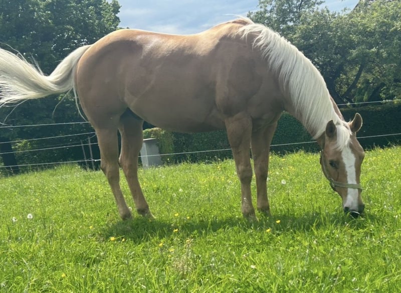 Due to a lack of time, I am looking for a new owner for the wonderful, handsome blonde who can dedicate more time to him! Herbie joined us at the age of 4 after a solid basic training and has since mainly been used as a family horse in the arena and on trail rides. This sensitive bundle of muscle loves children above all, is extremely gentle to ride, and impresses with his honest, lovable personality!