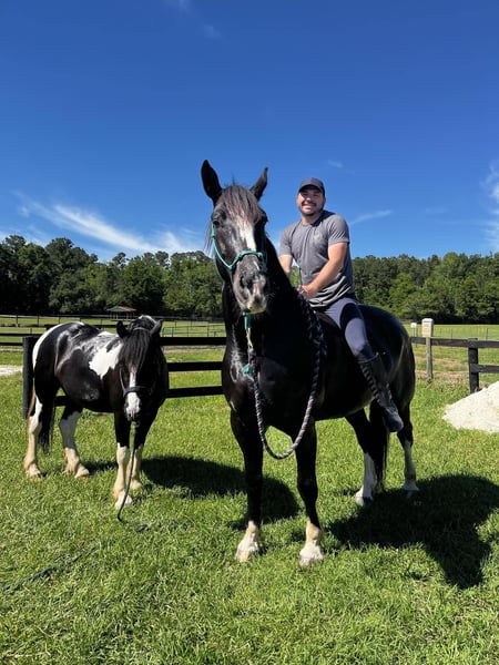 ONLINE AUCTION PLACE YOUR BIDS AT PLATINUMEQUINEAUCTION DOT COM $3500 STARTING BID AUCTION ENDS JUNE 30TH Introducing Moonshine! A stunning 9yr 16.3h Shire x QH cross gelding with a one-in-a-million brain! Calm, sweet, and comfortable push ride. Moonshine has years of experience fox hunting and doing guided beach trail rides with beginner riders. He is accustomed to riding around traffic, bicycles, dogs, and water. Moonshine loves schooling cross country and going to hunter paces to jump all the things…ditches, banks, coops, logs, rock walls, etc. He has a smooth, flat jump that is easy for riders starting over fences. Moonshine is easy to load, haul, tie, bathe, trim, etc. He has a scar on his neck from being bit by a stallion as a baby. It has been evaluated by the vet and does not bother him. Moonshine is a barefoot easy keeper with no vices or maintenance. He turns out in a mixed herd and keeps a clean stall. He is up-to-date on shots, Coggins, floating, deworming, sheath cleaning, and hoof trimming. If you’re looking for a large all-around draft cross to trail ride, jump, or fox hunt, don’t miss out on this awesome horse! Moonshine is located in Ocala, Florida and shipping can be arranged anywhere in the country. Please call Rachel with Show Me Sport Horses at 352-467-5695 with any questions. Located in Ocala, FL.