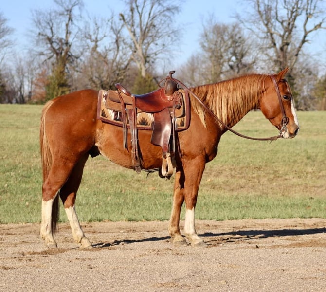 ONLINE AUCTION Place your bids at www.PlatinumEquineAuction.com Starting Bid $3500 Auction ends December 29th, 2024 Need a new saddle? Check out White Rock Saddles on our website or Facebook! Tamale is a 9 year old, 14.2 hand QH gelding. He is quiet, safe, and gentle. He is very experienced outside doing a variety of jobs. Out on the trails, Tamale is confident and brave. He crosses all natural obstacles without hesitation. He crosses water and bridges, steps over logs, goes up and down banks, and ambles down the trail either alone or with the group. Tamale will neck rein, back, and sidepass. He stands still for tacking and mounting. He will walk, trot, and canter in the arena as well. On the ranch, Tamale is experienced with all aspects of ranch work. From dragging calves to the fire and branding, to sorting pairs, to pushing to the pens, to loading trucks. Tamale is reliable and able to do it all. He is enjoying to ride for riding through the herd in the pasture and checking fences. Most recently we took Tamale out on the cross country course. He did not hesitate with any fence. He was bold and brave. Logs, banks, water jumps, and more were no issue for him! He could easily do low level eventing or fox hunting. Tamale loads and hauls well. He keeps his cool in new environments. He gets along well outside in a herd with mates and geldings. He is a fun, all around gelding that is game for any job you might have for him! For more information, please call or text Sammi Waugh 704-798-5497 Located in Brooksville, KY. ONLINE AUCTION Place your bids at www.PlatinumEquineAuction.com Starting Bid $3500 Auction ends December 29th, 2024 Need a new saddle? Check out White Rock Saddles on our website or Facebook!