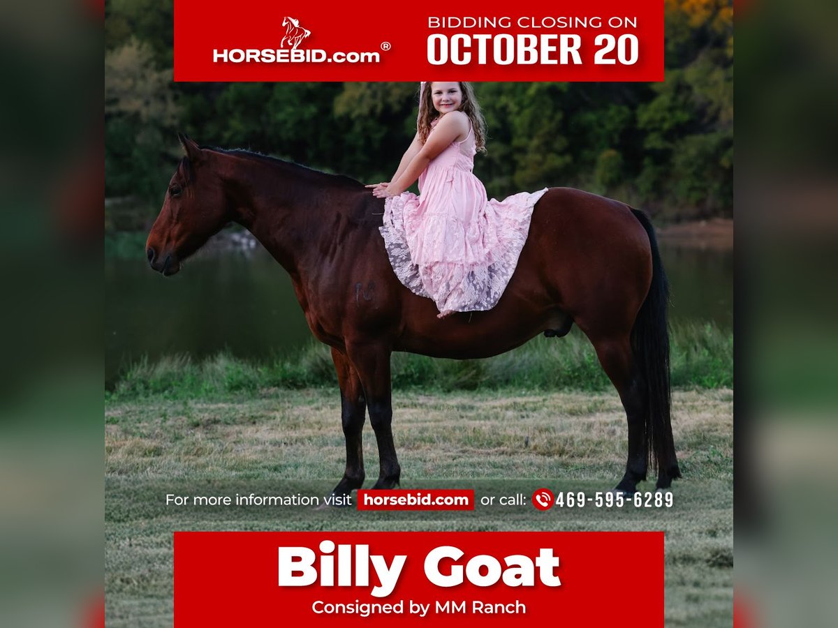 ♦️ 𝐭𝐡𝐞 𝐀𝐌𝐄𝐑𝐈𝐂𝐀𝐍 𝓕𝓪𝓵𝓵 𝓒𝓵𝓪𝓼𝓼𝓲𝓬 ♦️ Happening now thru MONDAY | OCTOBER 20th - Available EXCLUSIVELY on HorseBid's website! For more details and to register visit: www.Horsebid.com CONSIGNOR CONTACT: MM Ranch 469-595-6289 LOCATION: Forney, TX BREED: Quarter Horse REGISTERED: No COLOR: Bay HEIGHT: 13.3 AGE: 11 GENDER: Gelding 🐐🐐Billy Goat as we affectionately call him is a 11 yr old short but stout little versatile ranch horse!! He gets his name from being like a goat!! He will go anywhere (up the side of mountain), he can eat anything and survive 😂(weeds, bad hay), he is just as tough as a Billy goat!! 🐐🐐 He stands a whopping 13.3 hands tall. So if you are wanting one closer to the ground he would be perfect. He can easily carry any size adult but yet perfect size for a child too. He is stout and thick made. 👉🏼👉🏼 Billy is the coolest punchiest little horse around! He is worth his weight in gold! He was born and raised on a ranch in Montana. A 84 yr old rode man broke and trained him. He rode him daily on ranch doing anything and everything off him. Checking fences, sorting cows, checking the mail, riding on the trails, using him to pack during hunting season, riding him on hunting trips, roping and doctoring calves, helping break colts, etc.. 💃🏻💃🏻He is a fancy broke little guy with all the bells and whistles. He rides like a cutting horse. He will spin circles, cut a cow, run to a cow out in the pasture. He would make a perfect breakaway horse or to be shown in amateur cutting classes. Yes he has that fancy of a handle. He can one step short lope off. Really slide to a stop. Everything you would expect in a tried and true ranch horse (he is just in a smaller package). 📦 He has absolutely no bad habits. Super easy keeper. 🌎🌎 We can help arrange shipping if needed. All paperwork will be included with him. He is up to date on all shots and had his feet done. He is ready to go to his new home.
