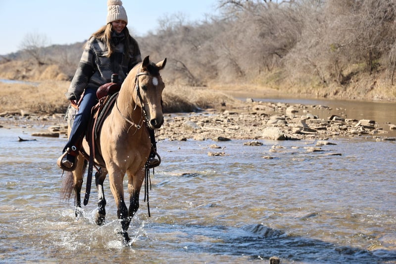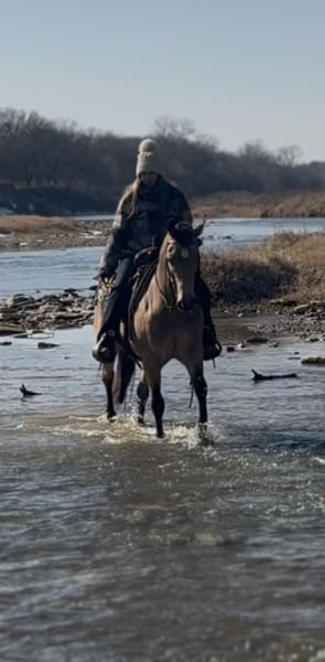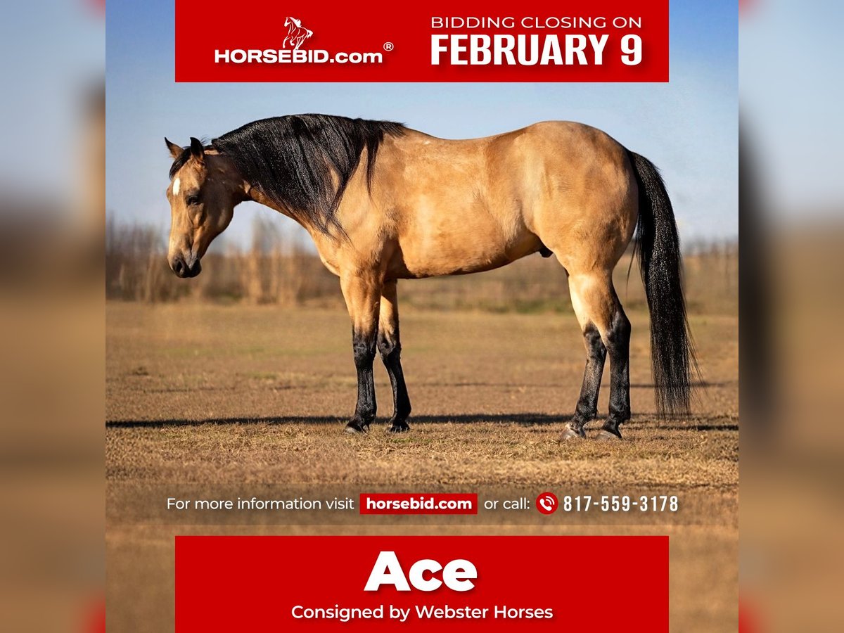 ❤️🔥𝑩𝒆 𝑴𝒊𝒏𝒆 𝐒𝐄𝐋𝐄𝐂𝐓❤️🔥 Happening now thru MONDAY | FEBRUARY 9th - Available EXCLUSIVELY on HorseBid's website! For more details and to register visit: www.Horsebid.com CONSIGNOR CONTACT: Webster Horses 817-559-3178 LOCATION: Ponder, TX BREED: AQHA REGISTERED: Yes REGISTERED NAME: JB TARTANERO COLOR: Buckskin HEIGHT: 14.1 AGE: 12 GENDER: Gelding AQHA Buckskin Gelding – 12 yrs – 14.1 hh This handsome AQHA buckskin gelding is 12 years old and stands 14.1 hands tall. He has had only two owners prior to us and has been used primarily for trail riding, parades, gathering cattle, and checking fence lines. He has seen a lot of the world and handles it with ease. He will lope circles both directions, has a decent turnaround, will break at the pole, and has enough stop. With his natural ability and attitude, he would make a neat little heel horse for someone at a lower number or someone just wanting a handy, broke gelding a step above a trail horse. This horse has a big, goofy personality and is very in-your-business. He is extremely easy to catch, loves attention, and is the kind you can just get on and go. He neck reins well, is gentle for anyone to ride, and rides comfortably one-handed. His walk is smooth and controlled, though he is naturally more upbeat and walks out on a loose rein more than a pokey type. He has a nice trot and a short, comfortable lope. He will lead or follow in a group, handles traffic, loud music, and a variety of animals, and has been hauled to different trails and parades. He loads easily, hauls quietly, and backs out of the trailer. He is easy saddle/groom, easy to shoe, clean-legged, sound, and an extremely easy keeper who stays fat on just hay. He does well turned out or on daily turnout and does not need to be stalled. If kept in a stall 24/7 for long periods, he can mildly windsuck out of boredom only (no chewing). This is easily managed with turnout during the day and stalled at night or his option to be in or out. He’s playful and likes stall ball toys, if kept up all the time he needs something to do, this is not something we fault him for just his personality. He’s very very personable like a dog. He is super healthy, low-maintenance, and uncomplicated — no special feed, no special care. If you’re looking for a horse you truly can’t mess up, this is your guy. His long mane and tail and beautiful buckskin color with a sooty, smoky undertone make him as cute as he is useful. 📍 Located in Ponder, Texas 🚚 Delivery available anywhere 🩺 Vet checks welcome at buyer’s expense 📱 For more information, text Olivia at 817-559-3178 You can see his exact demeanor in the video.