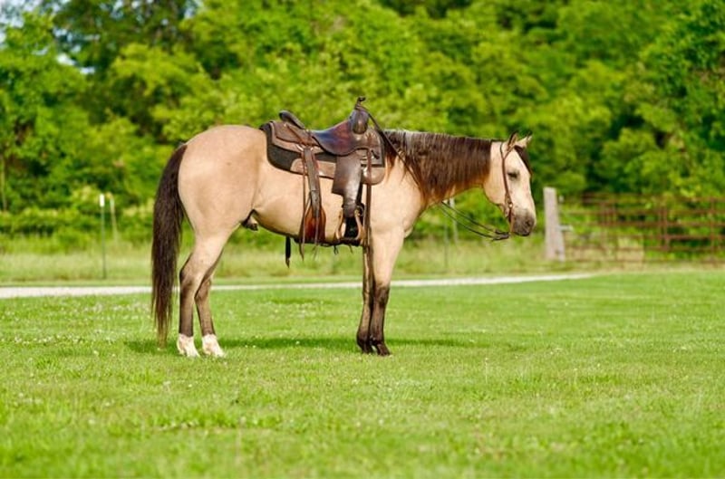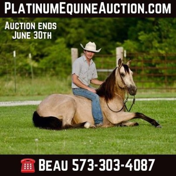 ONLINE AUCTION PLACE YOUR BIDS AT PLATINUMEQUINEAUCTION DOT COM $3500 STARTING BID AUCTION ENDS JUNE 30TH Ace is a beautiful 10 year old aqha registered buckskin gelding that stands 14.3 hands tall and has great conformation. He has been trail ridden absolutely everywhere! He goes anywhere and crosses anything you point him at. He is quiet on the trail and rides out great alone or in a group and doesn’t care if he is in the front middle or back. He is traffic safe and has been around all types of farm animals and wildlife. He has been on many overnight trips and does great! Ace also does great in the arena and would excel in the ranch riding classes if you choose to take him that way He is an honest good minded gelding and does well with time off. He is a blast to ride and loves to please! -no spook -no buck -no bite/kick -Loads/Unloads great -stands good for farrier -stands good for clipping -does great in a stall or out on pasture -does well with other horses -utd on worming and dental work -100% sound -no old injuries or scars Any other questions feel free to give me a call or text Beau Slaughter 573-303-4087 Located in Canyon, TX.