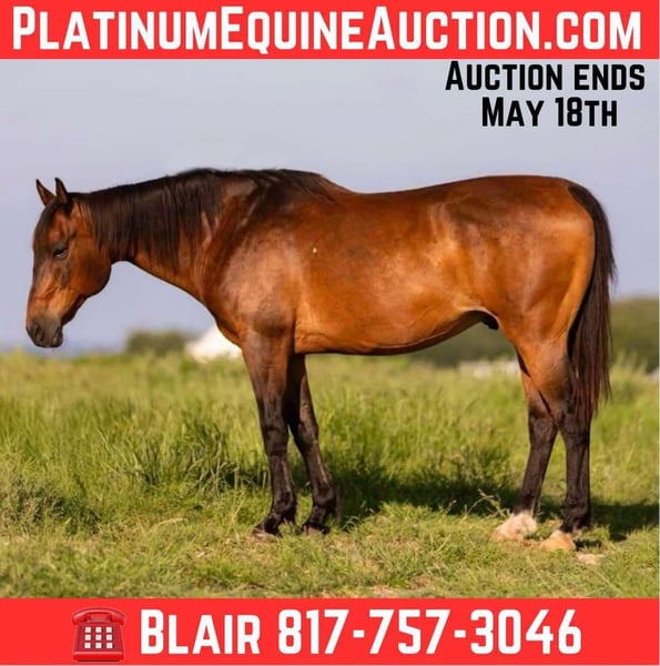 ONLINE AUCTION Place your bids at www.PlatinumEquineAuction.com Starting Bid $3500 Auction ends May 18th, 2025 Need a new saddle? Check out White Rock Saddles on our website or Facebook! Apache is a 11 yr old, 15H EASY and SWEET as pie, bay gelding. He came off a using string on a ranch where the rancher’s teenage daughter primarily rode him. He’s been roped off of in the pasture and the girl also used him in play days! He does it all and is handy broke like a good one should be! Apache is GENTLE and extremely kind. He has ZERO, buck, bolt or rear and truly aims to please always. He isn’t spooky and would make anyone the perfect using horse, trail horse, playday or even lesson horse! He would also make an arena roping prospect as he has a fantastic stop. He neck reins with absolute ease, moves off leg great, opens and closes gates great, goes the speed you ask, switches gaits and stops great! Apache is FUN! This guy loves attention and he LOVES to go to work doing anything and everything! He has a definite “go getter” attitude and would be great for anyone not wanting a plug to kick along every stride. He’s the perfect all around horse everyone’s been looking for! He loads perfectly like a good ranch horse should, just point, he loads himself and will even stand quiet when not tied. He leads, bathes ties and does all the things great! Apache is an incredibly sweet gelding and someone is about to fall in love with him! His ONLY flaw is a cloudy right eye due to an old injury. Despite this, he is absolutely NOT watchy or weary on the ground OR in the saddle on that side. He’s been living with it for years and has adapted perfectly. More pics and videos on his website page at northtexashorsecompany.com/apache. Please call Blair with North Texas Horse Company for more info at 817-757-3046. We are located in Weatherford, TX and can help arrange affordable shipping to anyone!! ONLINE AUCTION Place your bids at www.PlatinumEquineAuction.com Starting Bid $3500 Auction ends May 18th, 2025 Need a new saddle? Check out White Rock Saddles on our website or Facebook!