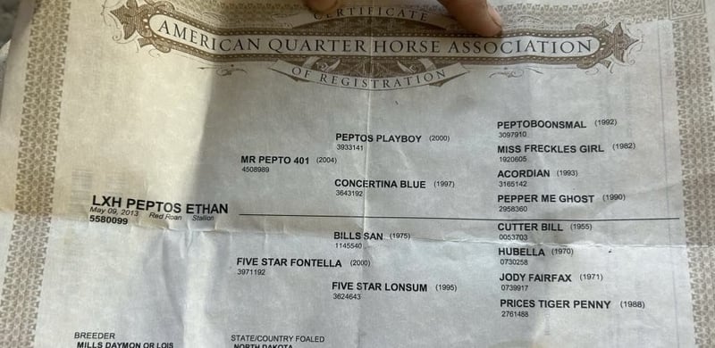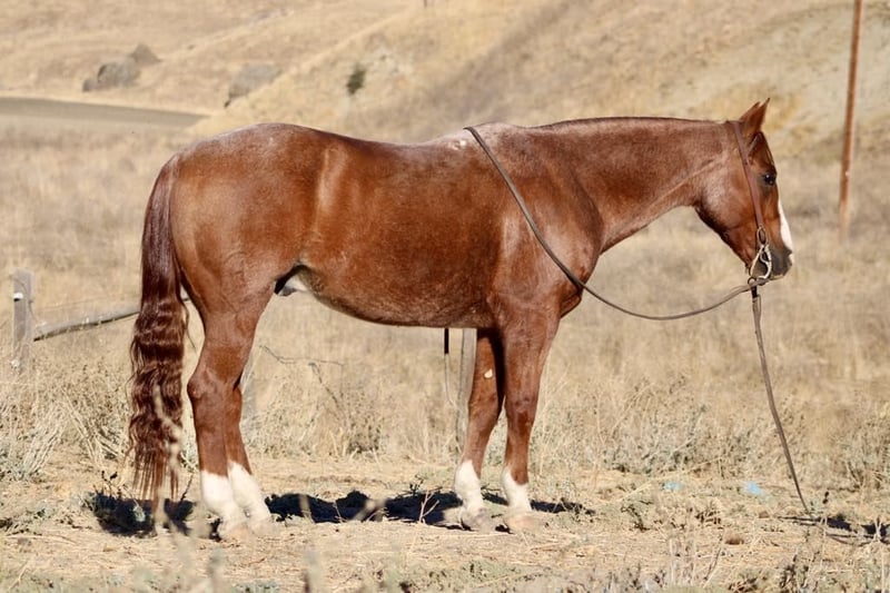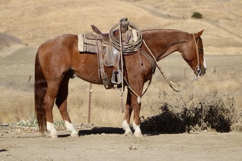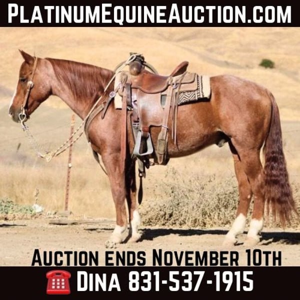 ONLINE AUCTION Place your bids at www.PlatinumEquineAuction.com Starting Bid $3500 Auction ends November 10th, 2024 Need a new saddle? Check out White Rock Saddles on our website or Facebook! Introducing LXH Peptos Ethan Aka Cutter, a stunning 2013 AQHA gelding 14.2 hands fancy roan gelding whose pedigree speaks volumes; he carries the legendary bloodlines of Mr. Pepto 41, the illustrious Peptoboonsmal, Bill San, and the iconic Cutter Bill. This horse is not just broke—he’s broke broke broke. Soft in the bridle with an effortless execution of perfect spins and impressive sliding stops, Cutter showcases exceptional talent that goes beyond flashy moves. But what truly sets him apart? He’s a tried-and-true ranch horse who excels at gathering, branding, and doctoring cattle with remarkable ease. When it comes to working on the ranch or hitting rugged trails, you can count on him to tie off securely while you doctor sick cattle. His sure-footedness shines as he navigates through deep waters and brush. Cutter tackles steep hillsides with confidence and style that will have heads turning everywhere you ride. Cutter doesn’t just look good he performs flawlessly too! He spins both directions effortlessly, picks up leads like a seasoned pro, and keeps his eyes keenly trained on any cow in sight. Cutter has been started in the heeling and is doing great. Whether you’re embarking on a solo trail ride or enjoying camaraderie in group settings, this gelding remains calm and reliable every step of the way. Just point him where you want to go! He’s exceptional when it comes to overcoming trail obstacles: crossing bridges is second nature for him; flags don’t faze him. He is safe for all different levels of riders.He has been to town and not bothered by the hustle and bustle of traffic cars or semis passing by. Cutter is easy to tack up, clip,groom and great for the farrier. Cutter will easily hop in any trailer ready to take on any adventure you throw his way. Cutter loads up easy and travels well will drink in new places. Cutter has been used for camping, trails, sorting and ranch rodeos. He is truly a fun and easy going partner ready to take you anywhere you want to go. He is a horse with great foundation breeding that you don’t see to often. Contact Longhorn Ranch Dina 831-537-1915 located in Paicines, CA. ONLINE AUCTION Place your bids at www.PlatinumEquineAuction.com Starting Bid $3500 Auction ends November 10th, 2024 Need a new saddle? Check out White Rock Saddles on our website or Facebook!