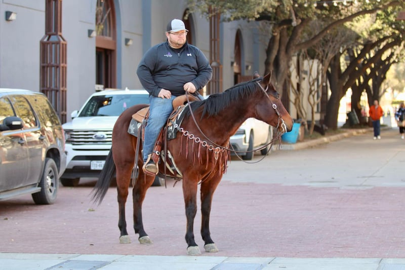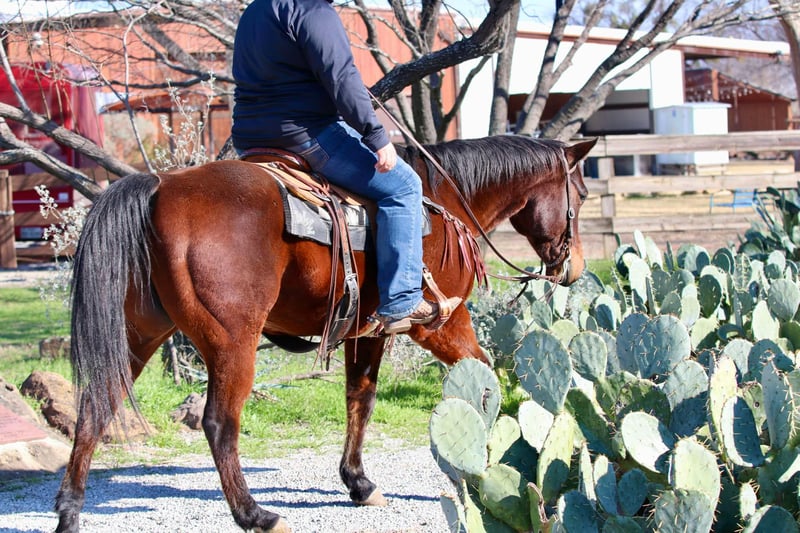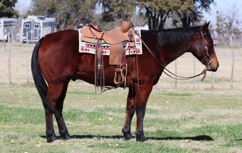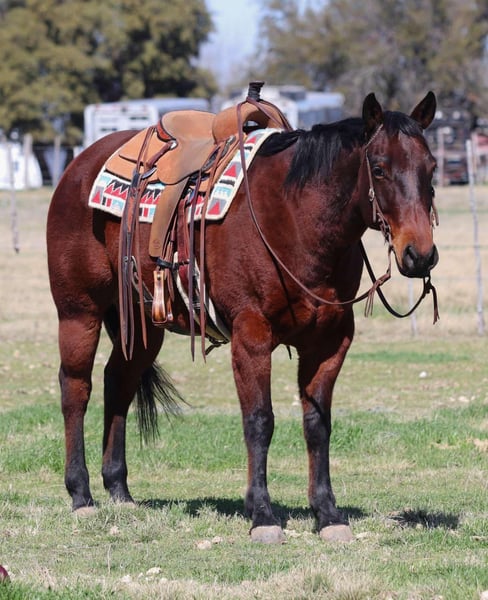 ONLINE AUCTION Place your bids at www.PlatinumEquineAuction.com Starting Bid $3500 Auction ends March 9th, 2025 Need a new saddle? Check out White Rock Saddles on our website or Facebook! Wow, is all we have to say about Badger! He is AQHA registered, RBR WARESTHECHICS, 2013 model bay gelding. You can never go wrong with a gelding like this, no matter what you are looking for, he is it! Badger is a jack of all trades! Down the trails, he is happiest, never bats an eye and goes absolutely anywhere you point him. He will cross through any body of water, go over anything you put him in front of, and never bats an eye at wildlife! Badge is very traffic and crowd safe, even handled the large crowd of people on a busy afternoon in downtown Fort Worth Stockyards like it was just another day! Badger has been used for multiple jobs, a turn back horse, he’s had steers headed and heeled on him, been used to doctor outside and knows what a long day of work at the sale barn is! He will cut a cow, and has been sorted on quite a bit. With all that being said, Badge is one hand broke, moves off your legs and rides the very best! He is beginner safe, great first time family horse, the once in a lifetime kinda horse. You can spend one second with this guy and know how special he is even if he’s wrapped in a plain bay wrapper! He is a puppy dog on the ground, picks up all four feet with ease, stands for the farrier and loves to be groomed. This is one of those horses you thought you’d never find, come see him for yourself! He is UTD on everything, and ready for his new family! Located in Lipan, TX. We can help arrange hauling anywhere in the US, Hawaii or Canada! Please call or text Makenna Hartzell 817-659-3778 for more information! ONLINE AUCTION Place your bids at www.PlatinumEquineAuction.com Starting Bid $3500 Auction ends March 9th, 2025 Need a new saddle? Check out White Rock Saddles on our website or Facebook!