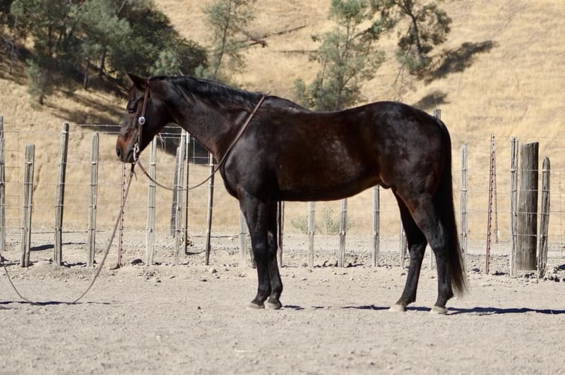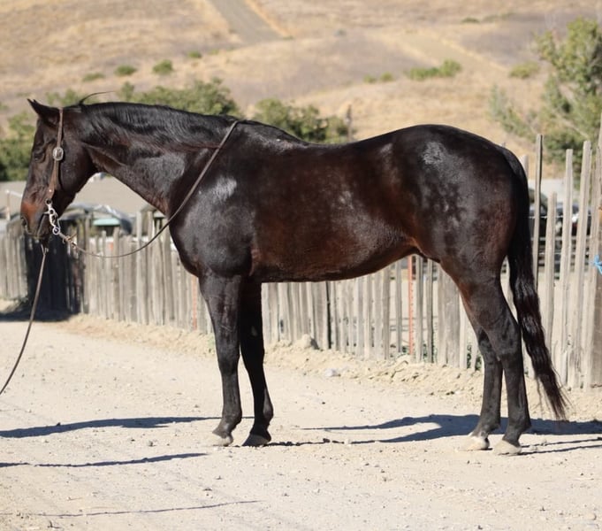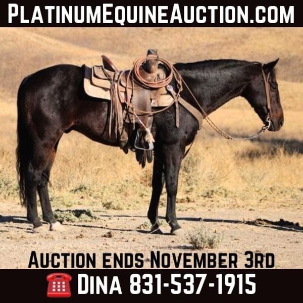 ONLINE AUCTION Place your bids at www.PlatinumEquineAuction.com Starting Bid $3500 Auction ends November 3rd, 2024 Need a new saddle? Check out White Rock Saddles on our website or Facebook! Longhorn Ranch proudly presents Cricket, an exceptional beautiful dark bay gelding standing at 14.3 hands and boasting an impressive 11 years of experience in various equestrian disciplines. This remarkable horse embodies the essence of safety and reliability, making him the perfect companion for riders of all ages from enthusiastic children to seasoned grandmothers and supportive husbands alike. Known for his unflappable demeanor, Cricket exudes calmness with every stride; he is gentle yet responsive, demonstrating a forgiving nature that instills confidence in even the most inexperienced riders. His proficiency in neck reining combined with a light bridle feel allows for seamless communication during rides. With impeccable lead changes, a solid stop, and smooth turning capabilities, Cricket’s performance is nothing short of extraordinary.Beyond arena work, this versatile gelding excels on ranch duties gathering cattle or sorting livestock with unwavering composure around vehicles and pedestrians. He navigates obstacles such as bridges, flags, teeter-totters, and flapping tarps without batting an eye; his trail skills are equally commendable as he traverses logs and deep water effortlessly while maintaining a tranquil pace. Tying well and easily accepting grooming routines like clipping or bathing further contributes to his low-maintenance appeal. Cricket’s adaptability shines through whether stabled or pastured; he remains serene under any circumstance. He loads and hauls great and is calm in unfamiliar surroundings. Current on farrier care along with vaccinations and dewormings ensures that this wonderful horse is not only experienced but also healthy. Cricket is a true gem and will be a great addition to any family or ranch home this boy is worth his weight in gold. Please contact Longhorn Ranch Dina 831-537-1915 Locates in Paicines, CA. ONLINE AUCTION Place your bids at www.PlatinumEquineAuction.com Starting Bid $3500 Auction ends November 3rd, 2024 Need a new saddle? Check out White Rock Saddles on our website or Facebook!