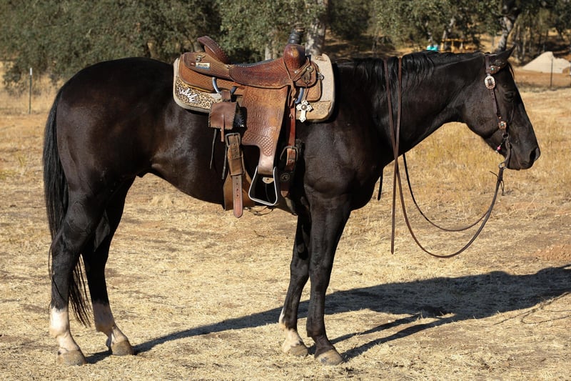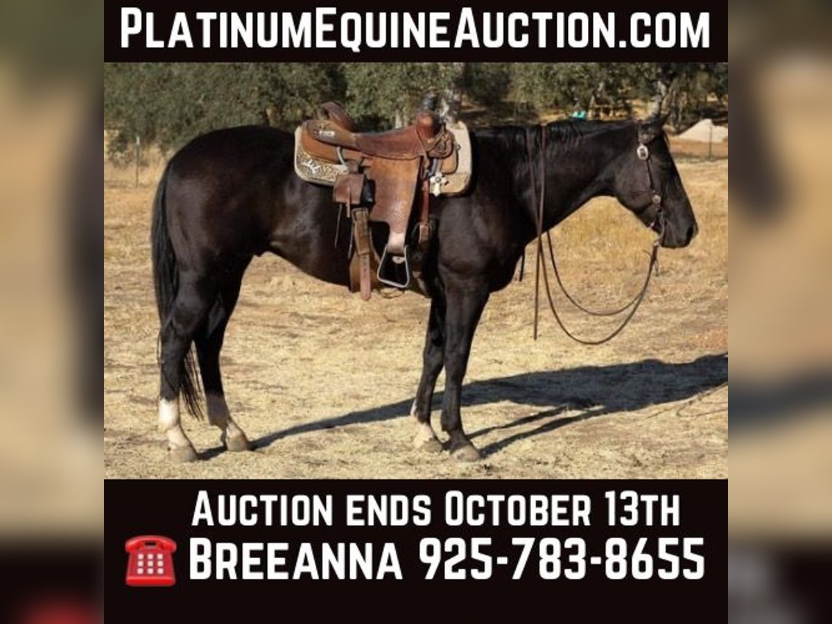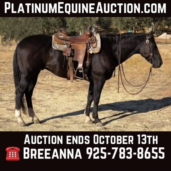 ONLINE AUCTION Place your bids at www.PlatinumEquineAuction.com Starting Bid $3500 Auction ends October 13th, 2024 Need a new saddle? Check out White Rock Saddles on our website or Facebook! Meet Blackjack, Your Dream Horse Awaits! Tired of searching for the perfect equine partner? Do you dream of a loyal companion to accompany you on thrilling trail rides and shine with you in the arena? Look no further than Blackjack, the 11-year-old, 14.3-hand, true black gelding who embodies the ideal of a gentleman horse. With his sturdy build and mature age, Blackjack is the perfect match for a wide range of riders. His extensive experience and calm demeanor make him an absolute joy to haul, as he stands quietly in the trailer for extended periods. Whether you’re embarking on a short jaunt or a lengthy adventure, Blackjack remains content. This seasoned pro has previously been a little boy’s faithful partner, sports became a priority, so he fell on the back burner. Though he’s had some time off, Blackjack has lost none of his finesse. He boasts smooth, fluid gaits, effortlessly walking, trotting, and loping, and collecting up beautifully. With a light touch, he responds eagerly to bridle cues, picks up both leads, stops, and backs on command. Regardless of your riding experience, Blackjack will make you shine in the arena, as he naturally carries himself with the poise of a show horse. Blackjack’s exceptional surefootedness inspires confidence, as he carefully navigates challenging terrain, placing one foot directly in front of the other to ensure a safe path. He tackles bridges, tarps, flags, logs, and water crossings with aplomb, always prioritizing his rider’s safety and security. Fearlessly walking along busy roads. This charming gelding has a sweet disposition and thrives on building a strong bond with his person. While he may be a tad shy initially, once he trusts you, his affectionate nature will capture your heart. Blackjack appreciates a gentle approach on the ground, not because he’s mean, but because he’s aware and cautious. If you’re ready to find your forever horse and make a striking pair on the trails and in the arena, Blackjack is the boy for you. He’s eager to meet his new partner and embark on a lifetime of adventures together. Contact Breeanna at Cross B Horses Call or text 925-783-8655. Located in Valley Springs, CA. ONLINE AUCTION Place your bids at www.PlatinumEquineAuction.com Starting Bid $3500 Auction ends October 13th, 2024 Need a new saddle? Check out White Rock Saddles on our website or Facebook!