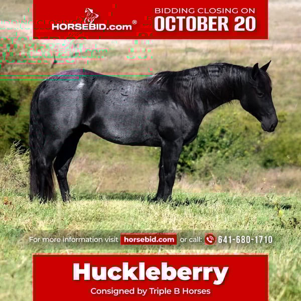 ♦️ 𝐭𝐡𝐞 𝐀𝐌𝐄𝐑𝐈𝐂𝐀𝐍 𝓕𝓪𝓵𝓵 𝓒𝓵𝓪𝓼𝓼𝓲𝓬 ♦️ Happening now thru MONDAY | OCTOBER 20th - Available EXCLUSIVELY on HorseBid's website! For more details and to register visit: www.Horsebid.com CONSIGNOR CONTACT: Triple B Horses 641-680-1707 LOCATION: Plano, IA BREED: QH REGISTERED: No COLOR: Blue Roan HEIGHT: 14.3 AGE: 12 GENDER: Gelding Huckleberry. 14.3 hands tall wrapped in a true blue roan package and the perfect age at 12 years old! He’s seen the sights, traveled the miles, and still has many years left to give to be your life long partner! Huckleberry has spent the last two years in a lesson program and we are so happy we have the opportunity to offer him to the public. His trot is to die for! He is so smooth and level headed. Soft in the face ands transitions smoothly. He has been desensitized to all silly things such as a yoga ball, tarps, flags, kids screaming and running everywhere. Nothing spooks this guy! Huckleberry is much more than just a lesson horse though! He is phenomenal on the trail, rides through town, been in parades, and competed in fun shows! There is no task to small or to big for this guy. He is willing to please every time! Huckleberry will meet you at the gate, stands tied, loads good, and gets along in a mixed herd. He requires no maintenance and easy keeper. He is 100% sound and has a PPE on file performed 10/8/2025! He is current on dental, wormer, and coggins! Feel free to give me a call to discuss more about this handsome guy!