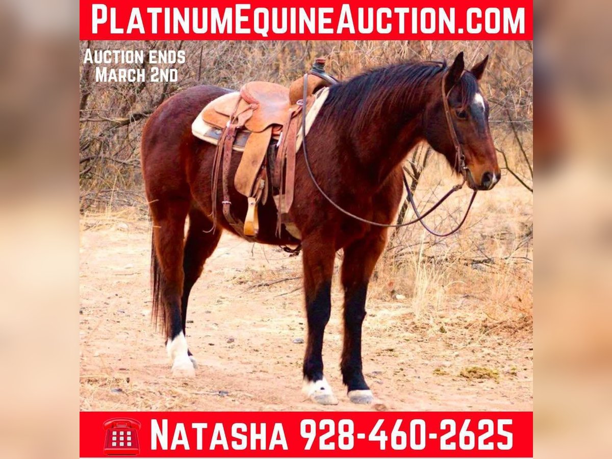 ONLINE AUCTION Place your bids at www.PlatinumEquineAuction.com Starting Bid $3500 Auction ends March 2nd, 2025 Need a new saddle? Check out White Rock Saddles on our website or Facebook! Captain is a 12 year old grade 1/4 draft cross gelding standing 15hh. Whether you’re looking for a real deal rough country ranch horse, your next magnificent trail partner to take you on countless adventures, or the perfect gymkhana jr. rodeo horse. Captain is broke and gentle that he will go absolutely any direction you decide point him. Trek through rough rocky terrain, ease through slick riverbeds, cross flowing waters, bulldoze through any brush, you name it and Captain will go through it with ease! This well versed gelding will also walk, trot, and lope both ways in the arena as well as neck rein and has good stop. Captain has done every job around the ranch and is no stranger to long days and wet saddle pads, making him absolutely safe and gentle for any level rider whether you’re 5 years old or 85 years old. Captain is easy to catch and good to groom, saddle, bridle, bathe, shoe, and load. UTD on shoes and floating as of 02/13/25. Will come with a clean coggins and health!! Located in Camp Verde, AZ Contact D/C Equine Services Dallas 804-822-2233 or Natasha 928-460-2625. ONLINE AUCTION Place your bids at www.PlatinumEquineAuction.com Starting Bid $3500 Auction ends March 2nd, 2025 Need a new saddle? Check out White Rock Saddles on our website or Facebook!