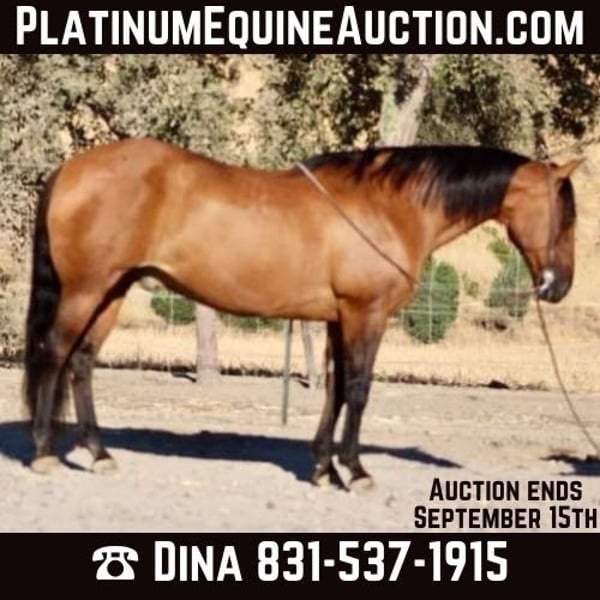 ONLINE AUCTION Place your bids at www.PlatinumEquineAuction.com Starting Bid $3500 Auction ends September 15th, 2024 Need a new saddle? Check out White Rock Saddles on our website or Facebook! Brazo is a striking 11-year-old dun, tiger striped legged, gelding. He’s an equine masterpiece that draws admiration wherever he goes. Standing a solid 15HH, his conformation exemplifies the ideal horse build, showcasing strength and agility. With extensive experience on the ranch, Brazo is not only brave and honorable but also a reliable partner who has penned and gathered cows, checked fence and branded all with ease. In the arena lopes effortlessly has a fluid stop and easy back up. His history includes participation in 4H events, drill as well as being an exceptional trail mount—perfect for any adventure you may embark upon. He has seen all trails obstacles and isn’t bothered by any of it. Known for his “in-your-pocket” personality, he follows you around like a loyal companion, displaying an affectionate demeanor that makes him exceptionally easy to handle. Trained in natural techniques, Brazo offers softness and suppleness both on the ground and under saddle; he’s forgiving yet responsive to his rider’s cues, making him suitable for beginners while still providing ample fun for seasoned riders seeking excitement. This gentle gelding excels in standing quietly when tied or being groomed; he’ll even fall asleep during belly scratches! His distinguished confirmation and solid black feet allows him to go barefoot all year long he will wear shoes if you prefer. Whether saddled up or ridden bareback, Brazo maintains composure—never getting spooked at unexpected sights or sounds—and showcases impressive skills including neck reining and responsive leg pressure transitions. His confidence shines through every trail ride; navigating diverse terrains effortlessly while remaining calm amidst wildlife encounters further solidifies his status as a true testament to his training and temperament. He pastures well with others and will go out alone or in a group setting. If you’re searching for a versatile horse capable of elevating your riding experience look no further. Please contact Longhorn Ranch Dina 831-537-1915 located at Paicines, CA. ONLINE AUCTION Place your bids at www.PlatinumEquineAuction.com Starting Bid $3500 Auction ends September 15th, 2024 Need a new saddle? Check out White Rock Saddles on our website or Facebook!