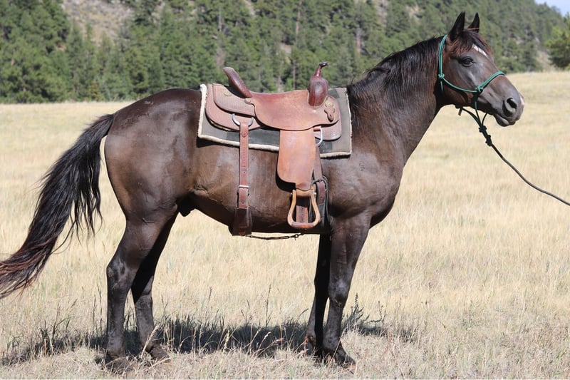 "AVAILABLE ON ONLINE HORSE AUCTION AT www DOT MagicHorseAuction DOT com BIDDING OPEN NOW thru TUESDAY | November 11TH! - BUY IT NOW AVAILABLE! *Final price will be determined on auction site* CONSIGNOR CONTACT INFO: Natalie Swaney 559-760-4777 LOCATION: Fort Collins, CO Kiwi- 12yo Morgan/ QH cross. He is safe and a jam up trail horse. Super kind. Gets along well with horses and people. Was used on a ranch and is great on the trail, travels out well and has a motor outside. He’s had a rope thrown off of him, he’s not spooky, packs a flag and isn’t phased by tarps or flappy items. He crosses whatever you point him at and can lead or follow on the trail. He is great with time off. Rides off the same. He’s great to load, haul, shoe, worm and vaccinate.