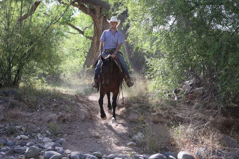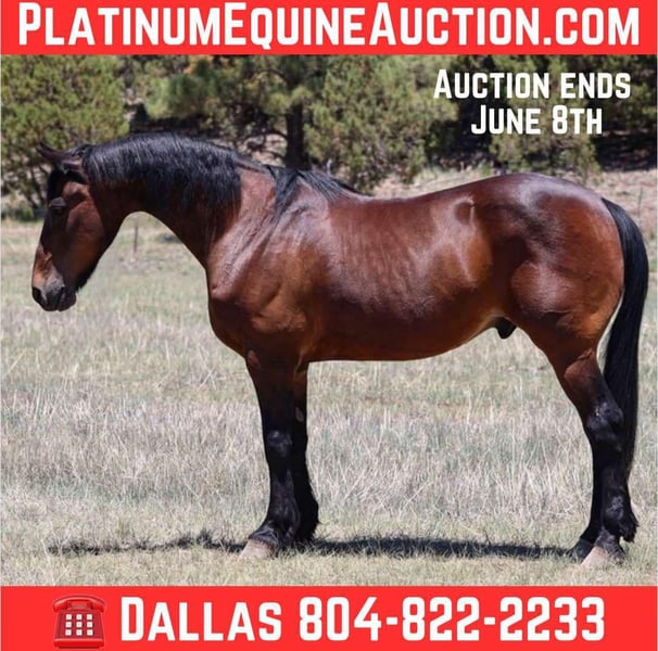 ONLINE AUCTION Place your bids at www.PlatinumEquineAuction.com Starting Bid $3500 Auction ends June 8th, 2025 Need a new saddle? Check out White Rock Saddles on our website or Facebook! Arthur is a grade 12 year old Friesian Quarter Horse cross standing 15.2hh. This gorgeous gelding is the absolute definition of gentle, in your pocket, and broke! Arthur handles absolutely everything we throw at him with confidence and a willing attitude. Whether you’re looking for your next adventure buddy or a floaty mover in the arena Arthur is your guy! Arthur will walk, trot, and lope both ways easily picking up both his leads. Collected up in an english style frame or on a draped rein like a western horse. He will also neck rein, sidepass phenomenally, has a great stop, carry a flag, and will ride just as good bareback! Arthur is not just a dream in the arena, he’s just as great to ride outside! Fallen logs, flowing water, rocky terrain, even speeding traffic through town, you name it and Arthur will cruise on by surefooted as can be without batting an eye! Absolutely no buck, or bolt, let Arthur sit and he will be the same horse every time. Arthur is easy to catch, in your pocket, and good to groom, saddle, bridle, bathe, shoe, and load! Will come with a clean coggins and health. Transport can easily be arranged anywhere in the US!! Contact D/C Equine Services Dallas 804-822-2233 Located in Camp Verde, AZ. ONLINE AUCTION Place your bids at www.PlatinumEquineAuction.com Starting Bid $3500 Auction ends June 8th, 2025 Need a new saddle? Check out White Rock Saddles on our website or Facebook!
