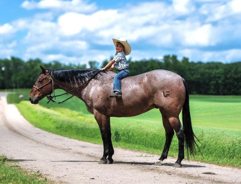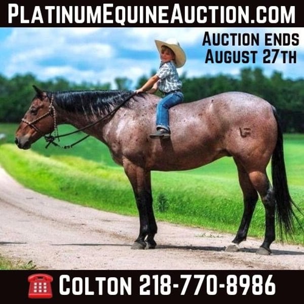 ONLINE AUCTION Place your bids at www.PlatinumEquineAuction.com Starting Bid $3500 Auction ends August 25th, 2024 Need a new saddle? Check out White Rock Saddles on our website or Facebook! Meet Big Sky, our remarkable bay roan gelding, whose extensive ranch experience make him a standout companion for ranchers. Having been ranched on his entire life, Big Sky comes with a wealth of experience and a proven track record of reliability and versatility. We had the privilege of acquiring him directly from the family who raised him, ensuring his background and training are well-documented and thorough. This gelding is exceptionally sure-footed in rough terrain, having seen a lot of country throughout his life. From rocky hillsides to uneven trails, Big Sky navigates challenging landscapes with ease. His extensive ranch experience means that he has encountered a wide range of scenarios and environments, ensuring there’s little you could show him that he hasn’t seen before. His reliability in such diverse conditions makes him an invaluable asset for any rider who values confidence and stability in their horse. Big Sky moves with smooth, comfortable gaits, making every ride a pleasure, whether you’re working hard on the ranch or enjoying a leisurely trail ride. In the arena he has a nice smooth trot and lope. He lopes collected circles both directions, has a nice stop, and rides nicely off leg pressure. His consistent willingness to please his rider is evident in his every action, making him a joy to work with. This natural eagerness to perform and his calm, cooperative demeanor combine to create an exceptional riding experience. Big Sky is a truly special gelding whose combination of trail experience, ranch work, and arena skills make him an ideal partner for any equestrian activity. His thorough training, sure-footedness, and smooth gaits ensure a reliable and enjoyable ride. Don’t miss the chance to add this outstanding bay roan gelding to your stable. Contact Triple T Livestock Colton 218-770-8986 Located in Nevis, NM. ONLINE AUCTION Place your bids at www.PlatinumEquineAuction.com Starting Bid $3500 Auction ends August 25th, 2024 Need a new saddle? Check out White Rock Saddles on our website or Facebook!