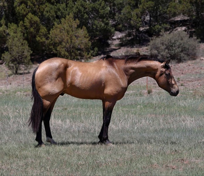 ONLINE AUCTION Place your bids at www.PlatinumEquineAuction.com Starting Bid $3500 Auction ends May 25th, 2025 Need a new saddle? Check out White Rock Saddles on our website or Facebook! Clyde is a 12 year old grade buckskin gelding standing 15.2hh. This Cadillac of a gelding has been there, done that! Whether it is countless hours on trails, pack trips, overnight hunting trips, leisurely trail rides, intense ranching, or even just arena work, Clyde is the guy to get it done. He has been used as a kids ranch horse, competing in ranch rodeos, 4H shows and gymkhanas while also still focusing on a lot of English lessons. This once in a lifetime gelding can get you through whatever you send his way. Clyde loves a good stroll through town, a hard days work, or even just a day to enjoy with you. He is as sweet and gentle as they come. He stands perfectly for baths, tacking, grooming, bridling, shoeing & trailering. He is a perfect fit for any age or level rider! Clyde will also come with a clean health and coggins! Call Jenna Edwards 864-985-9589 with any questions. Transport can easily be arranged anywhere in the U.S. from Cottonwood, AZ. ONLINE AUCTION Place your bids at www.PlatinumEquineAuction.com Starting Bid $3500 Auction ends May 25th, 2025 Need a new saddle? Check out White Rock Saddles on our website or Facebook!