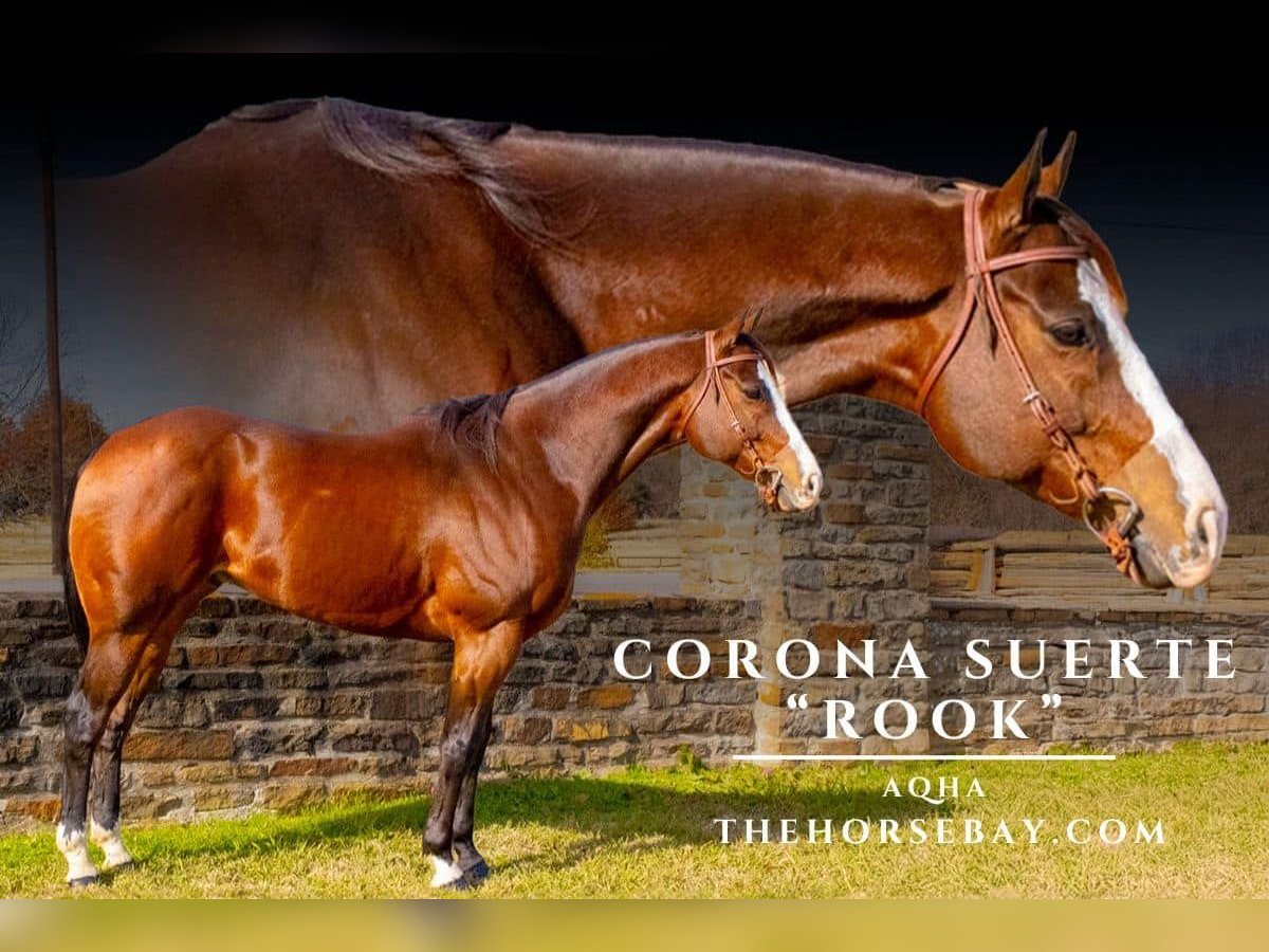 Rook is a 2013, 16-hand AQHA bay gelding. He is ATHLETIC AND TALENTED ranch horse. He has a steady, quiet, been there, done that personality but also has “get up and go” and is competitive in anything you ask of him. Rook is athletic and has a huge motor (when asked) but will also lope smoothie and slow circles; he is running a fast and smooth barrel pattern! He trail rides out well on a loose rein and handles all the obstacles like a pro. Rook is fun to ride and quiet enough for younger riders who like to walk or move out! He has been used to gather and sort on the ranch he will do his job well. He backs up, turns around both ways, has an amazing rollback, and walks, jogs, and lopes nice circles. Rook has a nice soft mouth, is finished with a neck reining, and has a great stop and will spin. He is easy and classy but has a huge motor if needed! Rook is also stunning in person and in photos!!! He has super ground manners, quiet to catch, lead, load, haul, bathe, groom, pick feet, saddle, bridle, stands tied anywhere, stands still for mount and dismount, and is great for the vet and the farrier. He has been ridden out alone, in groups, down the side of the road, hauled to arenas for events, and out of town for different cattle drives and trail rides. In town, he handles traffic and commotion like a superstar and has even been around trains and ridden on the side of the highway. This is a very relaxed, sweet, well broke gelding that is uncomplicated enough for just about anyone to get along with but has enough buttons for a more experienced rider to take far as a ranch, sorting horse, 1/D barrel horse, or just about anything else you could think of.
