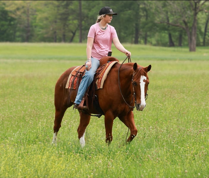 Birdie, gelding AQHA di 13 anni, altezza 15,1 hh, rosso roano