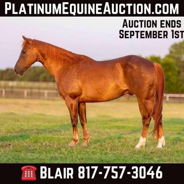 ONLINE AUCTION Place your bids at www.PlatinumEquineAuction.com Starting Bid $3500 Auction ends September 1st, 2024 Need a new saddle? Check out White Rock Saddles on our website or Facebook! “Dump truck” is a 14.3H, 2013’ AQHA chestnut gelding. This one does it all, watch his whole video!! From the ranch, to the roping pen, to the McDonald’s drive through, to the street and even INSIDE Tractor Supply, this guy will keep you absolutely safe! Dump Truck is one of the most versatile horses we’ve come across! He’s very gentled natured, easy to get along with, FANCY broke with all the buttons and SANE! He affectionately got his name from the a team roper who thought he dropped his booty like a dump truck…..and it sure fits him! He is a finished high number heel horse and has been hauled to a handful of jackpots recently. For the past few years, he was owned by an older gentleman who unfortunately passed away. He is safe and gentle for anyone to handle and he can go from the trails, to town, to the roping pen and not skip a beat. He’s not spooky and has ZERO buck, bolt or rear. Dump Truck has a very sweet, kind personality and gets along with everyone and everything! He is an easy hauler, loader, tier, and just plain easy to get along with in general with everything! He’s seen it all, even the inside of Tractor Supply and he acted like it was his 100th trip to the store for his favorite feed. He’s very handy broke and neck reins, moves off leg and stops with absolute ease. He picks up both leads great and will not switch gaits unless asked! Dump truck would excel for any higher number heeler, trail rider, rancher, handy kid or anyone just looking for an absolute fun one to enjoy! We also think he would make a jam up little barrel horse and we may experiment with that, so watch our website for those videos!! He would quickly make a breakaway horse and if patterned, he’d be the perfect junior rodeo horse! He would also make a sorting horse easily! Dump truck has TONS of heart and try! He LOVES to go to work and make you happy! He’s UTD on feet, coggins and teeth and ready to go! If you’re looking for a safe, honest absolute BLAST of a horse to ride, DO NOT miss Dump Truck!!! Dump Truck is a registered AQHA gelding! He will be selling WITHOUT his papers due to his previous owner’s passing and them being lost! The only way for a buyer to have papers in hand is to send in DNA after purchasing!! Papers are not guaranteed! His pedigree is listed in the pictures on our website, and he has been confirmed by previous family to be the horse shown on the pedigree! Go to his website page https://www.northtexashorsecompany.com/selectauctionhorses/dumptruck for more pictures and footage! Please call Blair with North Texas Horse Company for more info at 817-757-3046. We are located in Weatherford, TX and can help arrange affordable shipping to anyone!! ONLINE AUCTION Place your bids at www.PlatinumEquineAuction.com Starting Bid $3500 Auction ends September 1st, 2024 Need a new saddle? Check out White Rock Saddles on our website or Facebook!