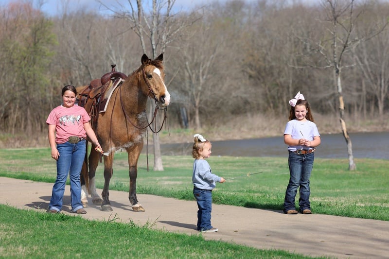 🌟𝑨𝒑𝒓𝒊𝒍 𝐀𝐋𝐋 𝐒𝐓𝐀𝐑 𝐋𝐈𝐍𝐄𝐔𝐏🌟 Happening now thru MONDAY | APRIL 6th - Available EXCLUSIVELY on HorseBid's website! For more details and to register visit: www.Horsebid.com CONSIGNOR CONTACT: MM Ranch 469-318-1902 LOCATION: Forney, TX BREED: Quarter Horse REGISTERED: No COLOR: Buckskin HEIGHT: 14 AGE: 14 GENDER: Gelding We are proud to introduce an absolute BABYSITTING UNICORN! One of those impossible to find little horses. Scooby Doo is the perfect little fun size gelding standing 14 hands tall. He has been part of our family and used by us. We know him both inside and out. Scooby Doo is a 14 year old buckskin gelding. He is just a fat and cute as can be. He has manners and all the fancy bottoms, he's as broke as broke gets and I would trust him with any kid, adult, grandma or grandpa, any age, beginner. Doesn't matter. You can ride him. I trust anyone can ride him anywhere, including BRIDLE-LESS! Absolutely NO kick or buck in him! Absolutely no bad habits! Absolutely no maintenance. He is simple, easy, and fun to ride. Plus is sure pretty to look at. He has been more miles and seen more country than most people! When I say he's been there and done that I mean it, he knows what a hard days work is outside in the country and will last all day. He is one handed broke, neck reins, and has a good stop! He has always been willing to go or do anything they have asked. He will ease thru the creeks/ponds, thickets, traffic safe, train safe, machinery safe, loud noises don't bother him. He's been to ropings, barrel races, jumping jumps, rodeos, spent many of long days working cows, dragging calves, hog hunting, swimming ponds, tied out camping, and been thru every aspect of the woods from thickets to boggy creeks, and trail riding down the roads. Trains honking and going by don't bother him, he will ride right next to it. He even rides ENGLISH! He has also been used to carry the American flag for the National Anthem at rodeos. He is BOMBPROOF, absolutely no spook at all and will go anywhere he is pointed, he never refuses or says no. He is a once in a lifetime time little horse. He is one of those that is as honest as the day is long. He's easy to catch, bathe, and hauls like a champ. He has the biggest heart and try of anything we have on the place. The kids themselves, saddle, bridle, and ride him everywhere with ZERO help from an adult. I trust this little horse enough for little kids to run up to him from the front or back and he will stand like a rock. You can go rope on him, pop bull whips, run barrels, run poles, goats tie, TRICK RIDE, breakaway, trail ride, shoot fireworks, etc…! Scooby will walk, trot, lope, or go as fast as you want in all the events. He is the coolest little guy around and everywhere we go he gets ALL the attention. He leads, loads, ties, bathes, clips, and stands for the farrier. I really can't say enough good things about him. Please don't hesitate to call us about Scooby Doo. We would love to talk to you about him. He sells 100% safe and sound in every way. He does have a pre evaluation in the pictures that was done by our vet. He is 100% ready to go to his new home. We can help with making shipping arrangements to anywhere.