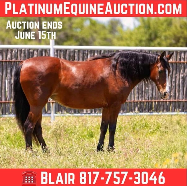 ONLINE AUCTION Place your bids at www.PlatinumEquineAuction.com Starting Bid $3500 Auction ends June 15th, 2025 Need a new saddle? Check out White Rock Saddles on our website or Facebook! Clover is a 14.1H, thicker than a Snicker bay 13 yr old bay mare. She is extremely sweet and always aims to please. This one is GENTLE GENTLE and kind enough for all ages to get along with. Clover was used by the Amish to pull a cart and to ride. She’s quite like a most horses that come off the Amish are. She’s very “go with the flow” and is happy doing whatever you ask her to. She’d be the perfect trail horse for anyone looking for a steady ride, lesson horse, or beginner horse. Clover is one of the kindest souled horses we’ve had. She’s a joy to have around, stands quite on the tie rail forever, loads, leads, bathes and ties all perfectly. She’s loves attention and melts anytime you love on her. She rides great and has been rode bareback a lot as well! She goes where you point her at the exact speed you ask! She isn’t spooky or watchy in the slightest and has ZERO buck, bolt or rear! We haven’t found anything we don’t like about her. Clover is such a sweetheart and will go on to make someone really happy! Go to her website page Northtexashorsecompany.com/clover for more pictures and footage! Please call Blair with North Texas Horse Company for more info at 817-757-3046. We are located in Weatherford, TX and can help arrange affordable shipping to anyone!! ONLINE AUCTION Place your bids at www.PlatinumEquineAuction.com Starting Bid $3500 Auction ends June 15th, 2025 Need a new saddle? Check out White Rock Saddles on our website or Facebook!