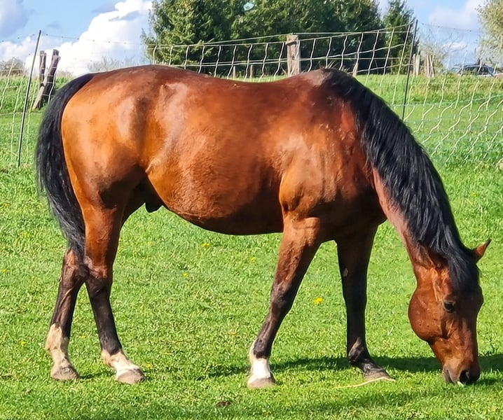 Zum Verkauf steht ein 14-jähriger Quarter Horse Wallach. Er wurde freizeitmäßig geritten und ist sowohl am Platz als auch im Gelände unterwegs. Geeignet für leichte, gemütliche Ausritte sowie für die Bodenarbeit, die er sehr gerne macht. Für den Turniersport oder den Einsatz im Schulbetrieb ist er nicht geeignet. Aufgrund seiner sensiblen Art wird er nicht an Anfänger oder Kinder abgegeben. Im Straßenverkehr ist er nicht zu 100% sicher. Der Wallach ist schmiedefromm und kennt das Verladen sowie das Fahren im Anhänger problemlos. Er ist sehr gut sozialisiert und im Umgang mit anderen Pferden verträglich. Er steht seit rund einem halben Jahr aus zeitlichen Gründen und muss daher wieder antrainiert werden. Wichtiger Hinweis:Er leidet an einer Heustauballergie und benötigt daher gewässertes oder bedampftes Heu bzw. alternativ Heulage. Passendes Zubehör kann bei Interesse gerne miterworben werden. Platz vor Preis!Ein gutes, passendes Zuhause ist mir besonders wichtig. Telefonische Anfragen bitte erst ab 17 Uhr. Vielen Dank!