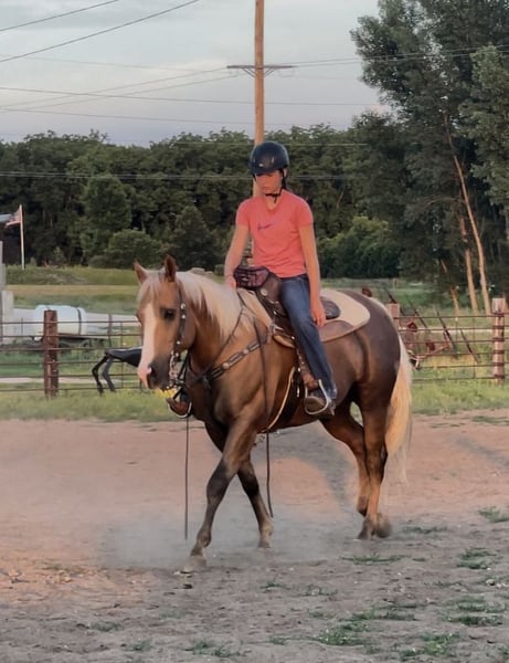 ONLINE AUCTION Place your bids at www.PlatinumEquineAuction.com Starting Bid $3500 Auction ends July 28th, 2024 Need a new saddle? Check out White Rock Saddles on our website or Facebook! Hiatt Chocolena Gold – barn name “Hyatt” he is a 12 year-old registered chocolate Palomino with a white main and tail. He will stand 14.3 hands tall and is a muscular 1200 pounds. He has great confirmation and he has a very pretty head. He is definitely an eye catcher! Hyatt rides with an old-fashioned one hand neck rein. I have used Hyatt in my lesson program for the past year and have had multiple different levels of riders take lessons on him. He has been used in 4H and local horse shows. He excels in disciplines like halter, walk trot, ranch horse, pleasure, and trail class. Hyatt crosses anything on the trail such as ditches, logs, mud puddles, & rocks. Wyatt is also very traffic safe. He has been rode on major highways where there’s tractors, semi’s, motorcycles, four wheelers and bicycles! Hyatt is an excellent overnight camping trail horse. He stands next to the trailer with no problems. He has even been rode next to the train tracks. He is not spooky or shy from different types of terrain. He has been rode in Matzel game reserve around wild life! He has also been ridden in large bodies of water, like rivers and lakes. He has been trail ridden in Palo Duro Canyon by an 11-year-old girl. He is very surefooted! Hyatt has also been around cattle. Hyatt’s ground manners are impeccable and he stands like a statue for the Farrier and to saddle, mount and dismount. He trailers well and he is broke to hobble on a picket line! He loads and unloads in any type of trailer with no hesitation ! Hyatt is one of the easiest horses to catch. He loves to be bathed brushed and picks up his feet automatically. He is 100% sound in every way mind, body and spirit. He loves attention and he is good in a stall or in pasture.! Hyatt has no bad habits like cribbing, weaving or pacing. He is a true all around family horse for everyone to ride and enjoy. We have also used Hyatt to break young Colts and to Pony/exercise our older horses, tons of videos and pictures available. Located in Lisbon, IA. Contact John McPhail 319-721-7714 with any questions. ONLINE AUCTION Place your bids at www.PlatinumEquineAuction.com Starting Bid $3500 Auction ends July 28th, 2024 Need a new saddle? Check out White Rock Saddles on our website or Facebook!