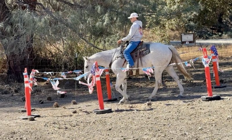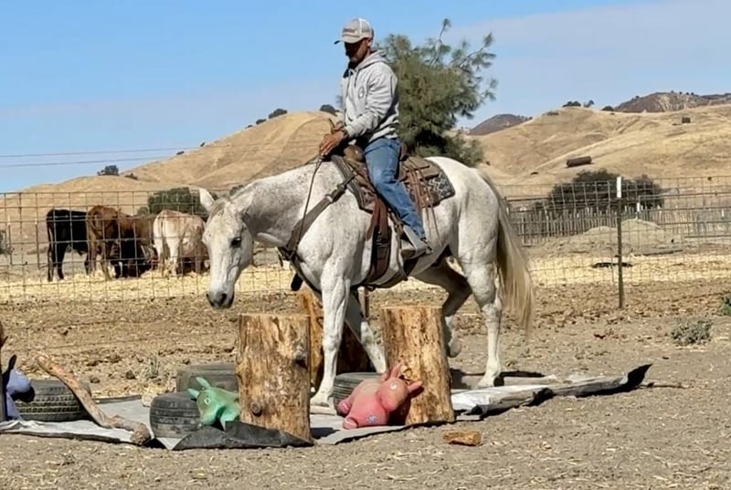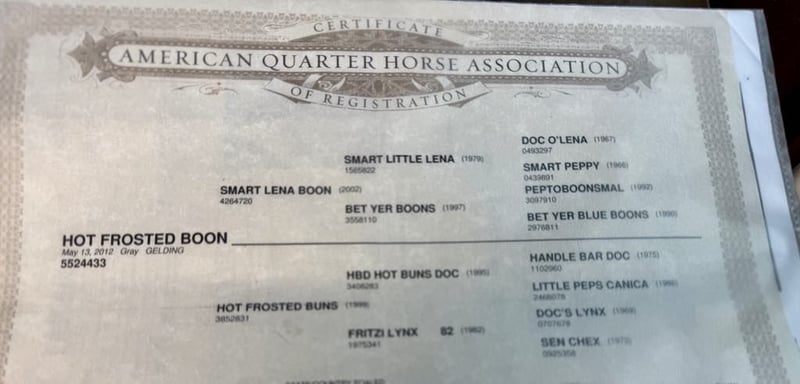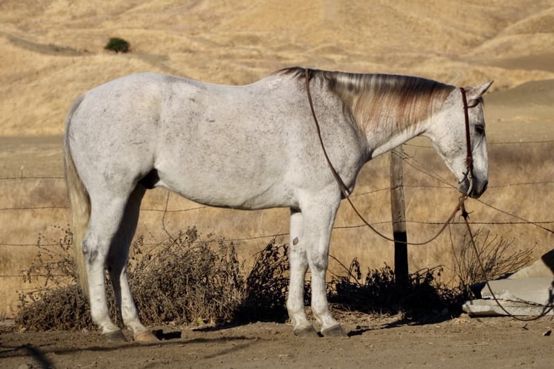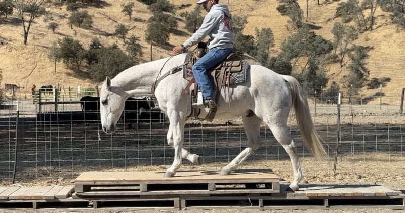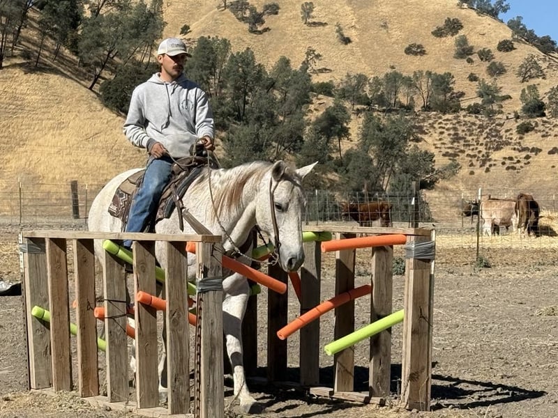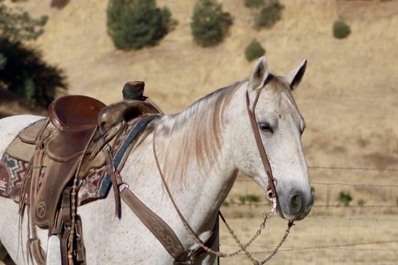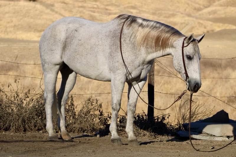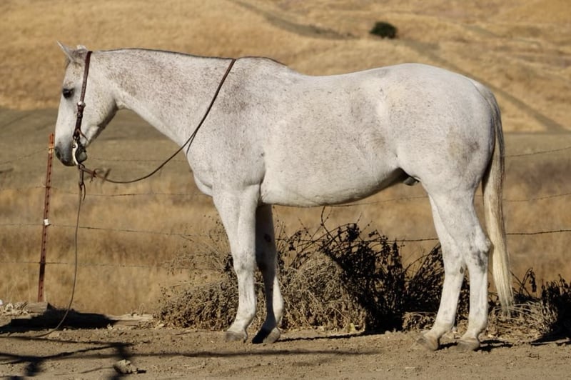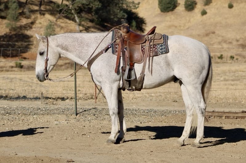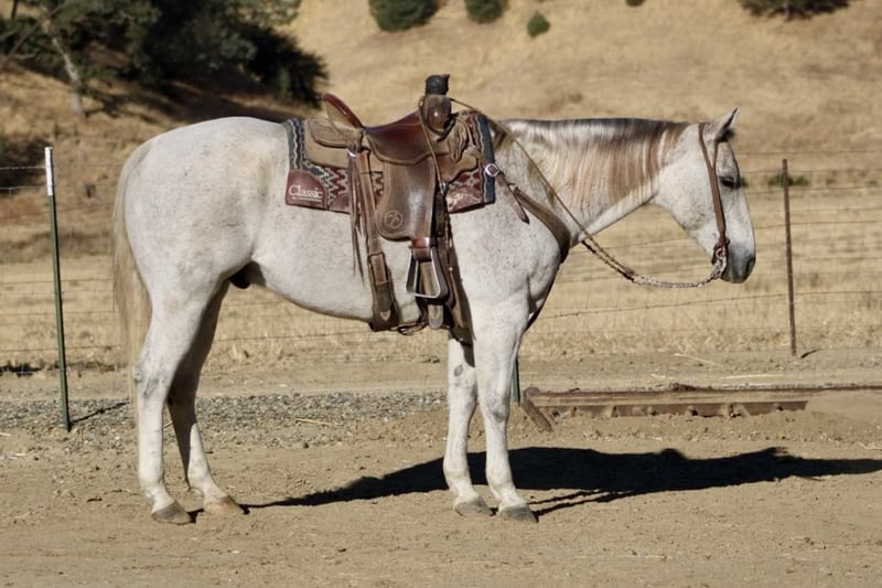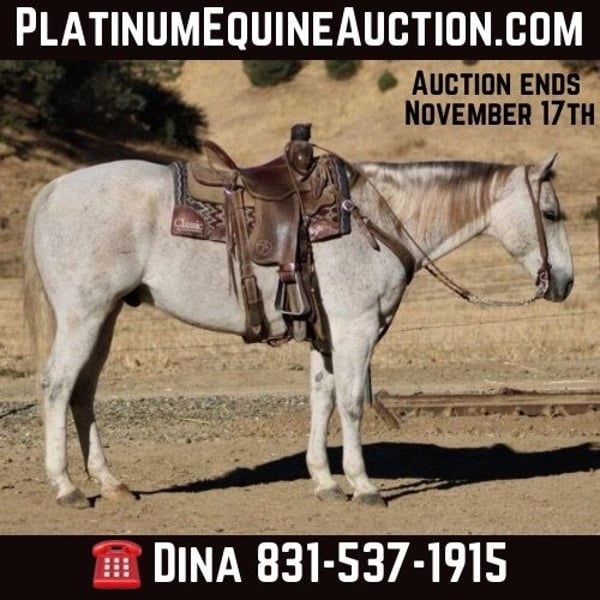 ONLINE AUCTION Place your bids at www.PlatinumEquineAuction.com Starting Bid $3500 Auction ends November 17th, 2024 Need a new saddle? Check out White Rock Saddles on our website or Facebook! Hot Frosted Boon the most incredible 15-hand grey gelding you will ever lay eyes on. This 2012 AQHA is a prime example of stellar breeding, boasting Smart Little Lena and the late Peptoboonsmal in his bloodlines. He is friendly will meet you at the gate and put his head in the halter ready to take on any adventure. Frosty is impeccably trained and gentle for riders of any skill level you can feel confident letting the littlest equestrians handle this sweet boy. He is safe for kids,husbands,grandmas,anyone who can climb on him he will take great care of. He will ride Bridleless, Bareback, in halter you name it you can do it on this horse. He has been a reliable ranch horse all his life, attesting to the extensive training he has received. Such horses are worth their weight in gold, and Frosty is no exception. He can handle any ranch task with ease, from rounding up cattle, to tying off on, branding and working gates, all while maintaining a calm demeanor. In the arena, he truly shines with his smooth slow collected lope, correct head carriage, and ability to pick up leads effortlessly. As if Frosty’s skills weren’t impressive enough, he also excels as a head horse. His is superb in the box and he easily runs to the hip and rates nicely he faces on a dime. He can be roped on by beginners to advance ropers. He is also a nice heel horse. Not only that, he excels on trails and he will cruise along with you enjoying the sights. He will go out alone or ride with friends doesn’t mind being in the front back or middle of the pack. Frosty is great at navigating through brush, steep mountains, and will Swim across Ponds he is sure footed and knows where his feet are. Frosty has encountered tons of wildlife such as deer, pigs, wild turkeys and elk. Frosty has also seen all obstacles such as bridges , car wash and will walk over tires without hesitation or fear and he will even do it all with no bridle. Frosty is even traffic safe handling speeding cars and semis blowing by. His attributes could fill a book – he truly is an all-around gelding that can do anything you ask of him with his kind disposition. And when it comes to handling, Frosty is a dream loading, tying, clipping, bathing, and working wonderfully with the farrier are all second nature for this exceptional boy. Frosty will pasture or can be stalled. He tacks up patiently and is very safe and easy to be around. Don’t miss out on the opportunity to own such a remarkable treasure like Frosty! Please contact Longhorn Ranch Dina 831-537-1915 Located in Paicines, CA. ONLINE AUCTION Place your bids at www.PlatinumEquineAuction.com Starting Bid $3500 Auction ends November 17th, 2024 Need a new saddle? Check out White Rock Saddles on our website or Facebook!
