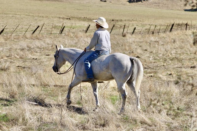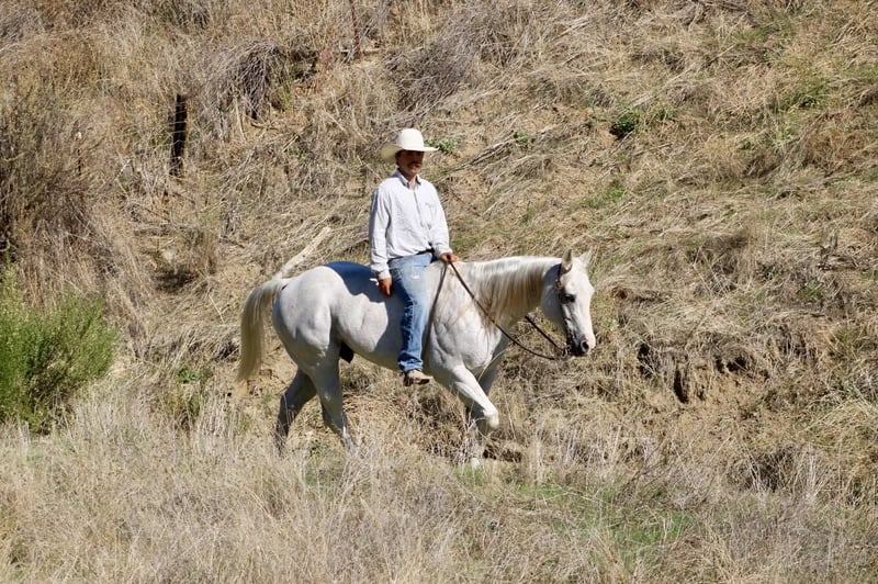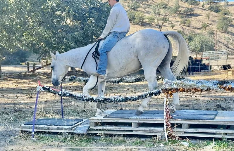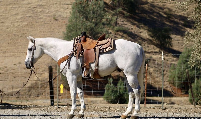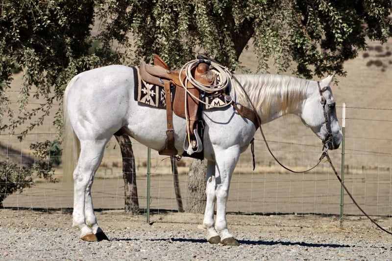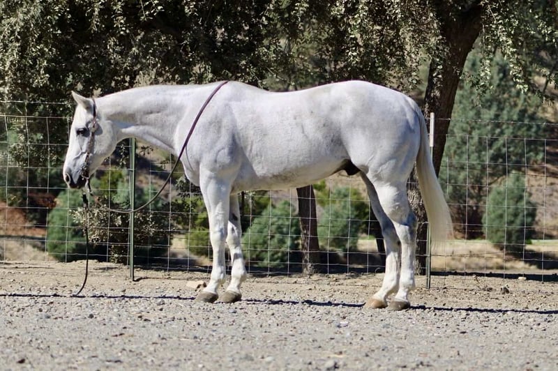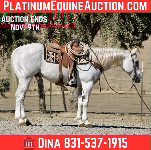 ONLINE AUCTION Place your bids at www.PlatinumEquineAuction.com Starting Bid $3500 Auction ends November 9th, 2025 Need a new saddle? Check out White Rock Saddles on our website or Facebook Amarillo Playgun – The Gentleman of Horses! 2012 AQHA Gray Gelding | Gallo Del Cielo “Rooster” × Playgun × Peppy San Badger. Amarillo Playgun doesn’t need gimmicks or gadgets — he’s the kind that speaks for himself the moment he steps into view. A rich, gray with presence, poise, and a good dose of personality, he’s the kind of gelding that makes everyone in the barn stop and look twice. Bred right and built right, this son of Gallo Del Cielo “Rooster” and Playgun has the kind of foundation that lasts. His bloodlines are stamped with cow sense, athletic ability, and trainability, and Amarillo carries every ounce of it with style. But what makes him truly special isn’t just his pedigree — it’s that rare, steady-minded, people-loving attitude that makes him pure joy to ride. He’s the picture of calm confidence — traffic, flags, tarps, balloons, cattle, barking dogs, strollers, you name it — he’s been there, seen it, and probably yawned his way through it. Kids can ride him, beginners can learn on him, and your seasoned hands will still grin at how good he feels. He’s a gentleman through and through — quiet to tack, easy to catch, and always happy to go to work. Under saddle, Amarillo is as smooth and collected as they come. He stays soft in the bridle, lopes slow, balanced circles, and has a stop that’s easy and deep without any fuss. He backs like a dream, side-passes, opens gates, and turns around with just enough ranchy flair to make you smile every time. His transitions are silky, his mind stays level, and he handles rough terrain like he’s reading the trail map for you. This horse has a resume that speaks volumes — he’s done ranch work, gathered and sorted cattle, roped and doctored cattle from the open pasture to the branding pin and arena. He crosses rivers and bridges, hauled to town, and packed kids down trails. He’s steady in a group, confident alone, and has that golden “point-and-go” attitude that makes him the ultimate trail master. You can lope him across the pasture bareback, doctor a calf, or take him through an obstacle course — he’s always the same: relaxed, reliable, and willing. He clips, bathes, stands tied all day, loads easy, and is a saint for the farrier. He’s just as happy turned out in a pasture as he is stalled up and pampered. He’s got a kind eye, an even kinder soul, and the kind of steady heart that makes you feel safe from the first ride to the thousandth. If you’re looking for the real deal — a horse with training, looks, brains, and a calm nature that’s second to none — Amarillo Playgun is that once-in-a-lifetime find. Smooth, classy, gentle, and as dependable as the day is long, he’s truly The Gentleman of Horses. 📍Longhorn Ranch – Paicines California 📞 Dina 831:537:1915 ONLINE AUCTION Place your bids at www.PlatinumEquineAuction.com Starting Bid $3500 Auction ends November 9th, 2025 Need a new saddle? Check out White Rock Saddles on our website or Facebook