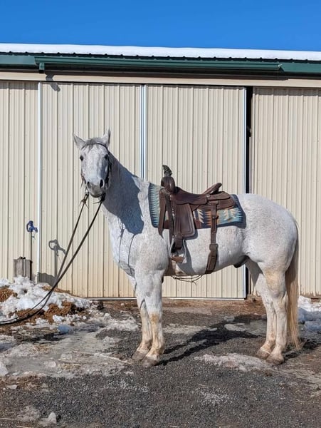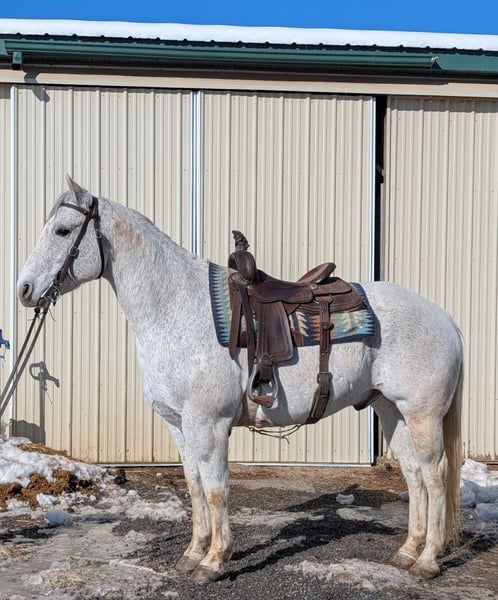 "AVAILABLE ON ONLINE HORSE AUCTION AT www DOT MagicHorseAuction DOT com BIDDING OPEN NOW thru TUESDAY | MARCH 3RD! BUY IT NOW AVAILABLE! *Final price will be determined on auction site* CONSIGNOR CONTACT INFO:ERICA KNIPP #617-838-4843 LOCATION:RINGGOLDS, PA" " 🌟🌟 Grey Goose 🌟🌟 🐎 Goose is your guy if you’re looking for a dependable, no-nonsense partner you can actually use. 🐎 🐴 Looking for your next work horse? 🐴 Looking for your amateur friendly lesson horse? 🐴 Look no further than Goose!! 🐴 Goose is a Solid, Sane, and Built to Work 🐴 Reliable Stock-Type Gelding 🐴 compact, well-made gelding that shows up every day ready to do his job. 🐴 balanced, functional build with a strong hind end, good bone, & a comfortable way of going that makes him easy to ride for long hours. 🐴 easy to live with 🐴 good ground manners 🐴 experienced traveler 🐴 can in or live out 🐴 no vices 🐴 pm for videos 🐴 sane, sensible, and honest 🐴 comfortable gaits, easy to sit 🐴 good feet and solid legs 🐴 compact, durable build 🐴 4 shoes - stands quietly for farrier & other routine care 🐴 UtD on vaccinations & Coggins 🐴 teeth recently done 🐎 Under saddle, Goose is steady, forgiving, & uncomplicated. He goes forward willingly, carries a rider comfortably, and is the type that builds confidence rather than tests it. 🐎 🐎 With a lot of versatility Goose is suitable for an adult amateur, ranch or trail rider, lesson or program use, or someone wanting a reliable lower-level performance or all-around horse. 🐎 📍 Located in New Ringgolds, PA 📩 Videos available upon request"