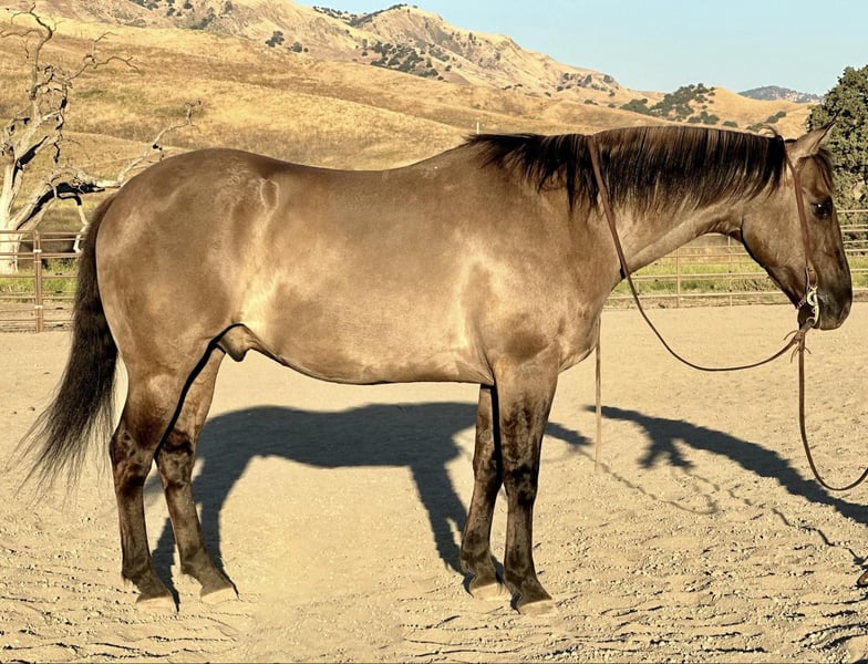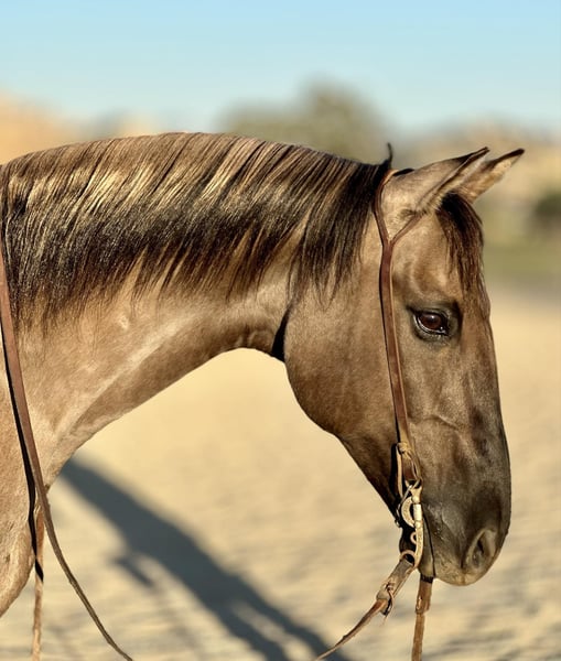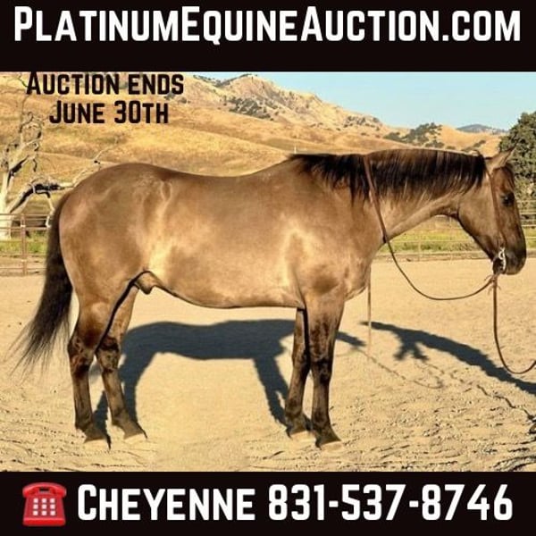 ONLINE AUCTION PLACE YOUR BIDS AT PLATINUMEQUINEAUCTION DOT COM $3500 STARTING BID AUCTION ENDS JUNE 30TH Sven is a 12 year old 15HH grulla gelding with all the shape and bone you could ask for! This handsome guy is a trail riders dream! He is laid back, willing and quiet. Sven is one of those campaigner trail gelding that will cruise at a relaxed speed no matter the scenario. He had more whoa than go and is user friendly for any level rider. Sven has smooth gaits and lopes nice pretty circles in the arena. Neck rein, move off leg pressure and has an amazing stop. Sven carries his head naturally low and out of the way. He has a sitable, smooth jog that anyone will admire. Out on the trail he will be the easiest horse to direct and will go in a group setting or out alone. He has no spook and has been hauled all over California from the mountains to the beaches for camping trips and day long trails! He is sure to be safe every time you pull him out, no matter how long he has sat. Sven is friendly, personable, and absolutely loves the attention from people. He will be the first horse to meet you at the gate to be caught and enjoy every moment with his person! People look long and hard to find a horse of this size, color and demeanor. Sven is located in Bitterwater, CA. For more info contact, Cheyenne Rey 831-537-8746