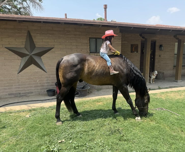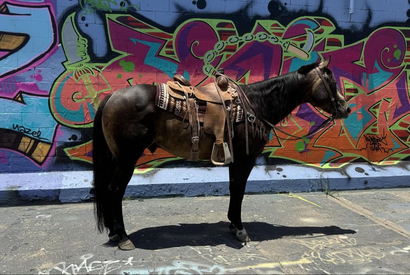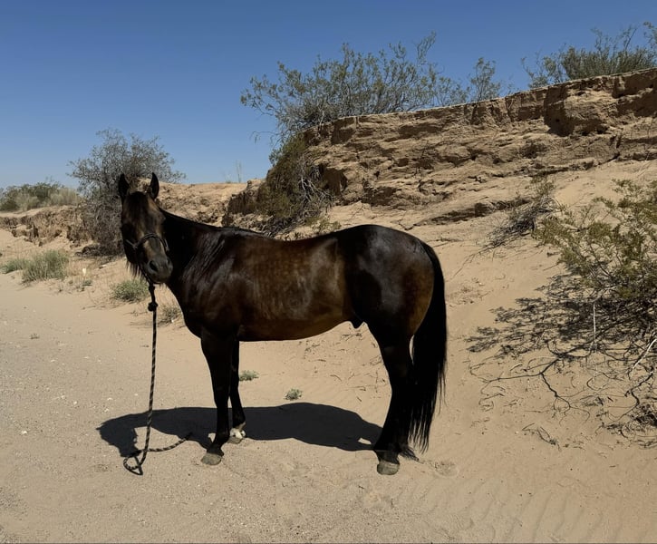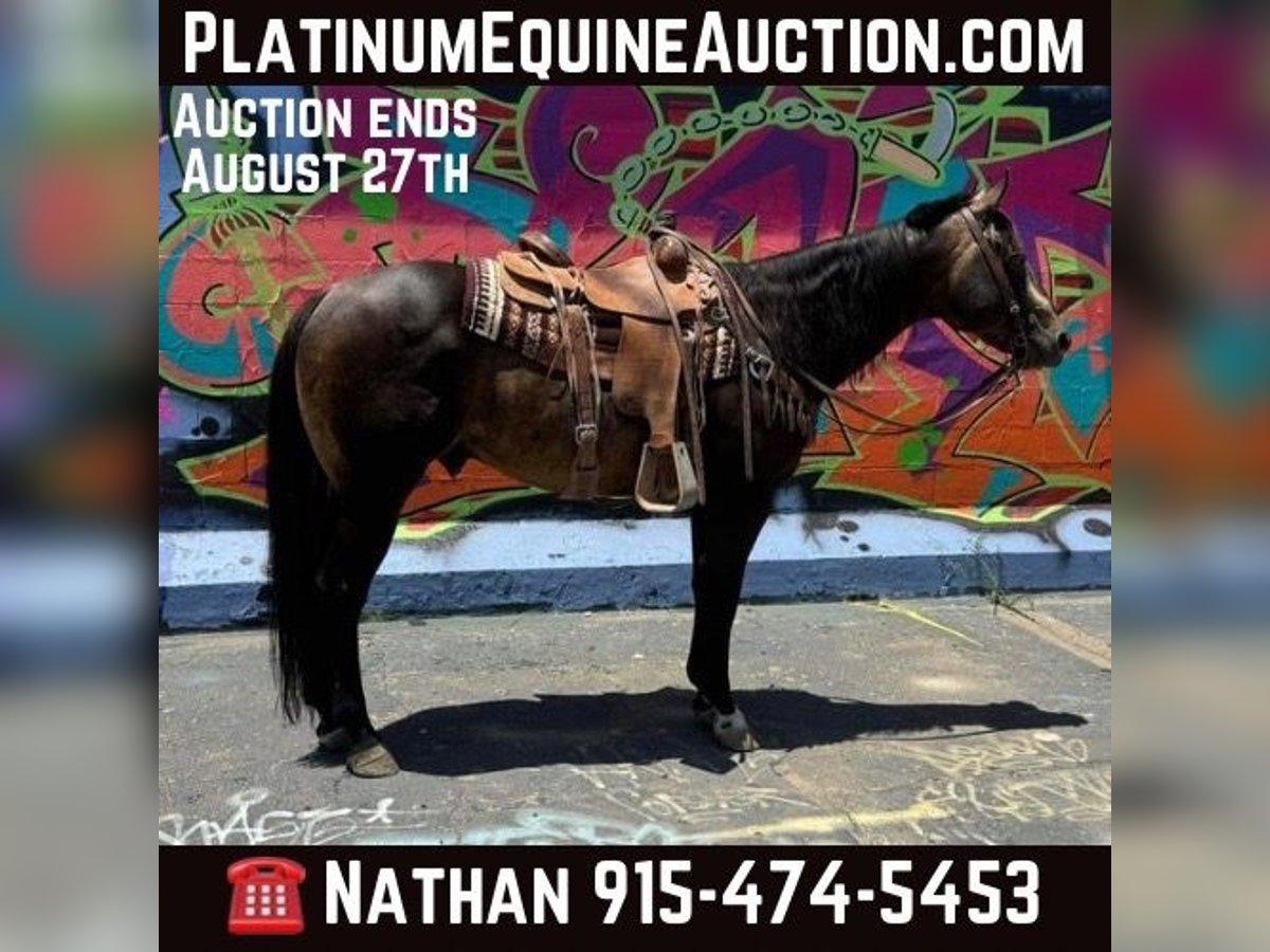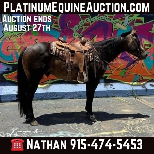 ONLINE AUCTION Place your bids at www.PlatinumEquineAuction.com Starting Bid $3500 Auction ends August 25th, 2024 Need a new saddle? Check out White Rock Saddles on our website or Facebook! Dexter is a 12 yr old sooty buckskin gelding he’s stands 15 h tall and is the prettiest buckskin color you ever seen. He’s been used on the ranch in west Texas in rough country, from pushing cattle from section pastures to bringing steers up in the roping pen. Dexter is easy going nothing really bothers him he’s easy to get along with, we actually pop fire works off of him and shoot a gun as well. He’s been on extreme trail rides from rocky country in the mountains to sandy deserts. We’ve also done a lot of pleasure riding in town around traffic. If your looking for a horse that’s gentle and has the looks here he is you will get noticed everywhere you go. Dexter has done some roping outside on the ranch would make an easy transition to the arena if someone wanted to go that direction with him. He’s been introduced to the smarty and slow steers in the arena. Dexter is easy to shoe has a brand new set. He ties, stands, saddles, bathes and will load and un load any trailer with no problems. He’s straight, clean and 100% sound. Don’t miss Dexter! Located in El Paso, TX. Contact Nathan Martinez 915-474-5453. ONLINE AUCTION Place your bids at www.PlatinumEquineAuction.com Starting Bid $3500 Auction ends August 25th, 2024 Need a new saddle? Check out White Rock Saddles on our website or Facebook!