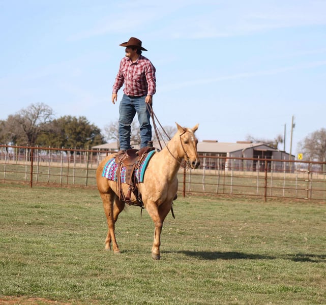 ONLINE AUCTION Place your bids at www.PlatinumEquineAuction.com Starting Bid $3500 Auction ends February 3rd, 2025 Need a new saddle? Check out White Rock Saddles on our website or Facebook! If you’re on the hunt for a calm, cool, and collected equine partner, look no further—Grumps Ironman, affectionately known as Oliver, is your guy! This handsome 2012 model registered APHA gelding stands a sturdy 15.1 hands tall and is simply a joy to be around. Oliver is the epitome of safe and reliable. No matter what you’re doing, this super docile and easy-going fella is always there for you. He’s been trail riding for countless miles in the beautiful Ozarks and all across Texas, and he’s seen it all without a worry. Whether it’s crossing rivers and streams, tackling hills, or navigating bridges and downed logs, Oliver handles everything like a pro. He is gentle and trustworthy 365 days a year, making him perfect for the whole family to enjoy. He will carry a flag, been to numerous parades, and has been used to move cattle. Want to light some firecrackers or shoot a gun? No problem! Oliver handles that no problem. He’ll walk, trot, and lope circles with a smooth, effortless gait that makes riding a true pleasure. Picture yourself cruising down the trail with a cold drink in hand—Oliver is the perfect partner for that! He’s also great with heavy traffic and bustling crowds. Just ask him about his adventures down Exchange Ave at the historic Fort Worth Stockyards! With horse-drawn carriages, crowds of people and loud music all around, Oliver took it in stride like a seasoned pro. This laid-back guy is a true unicorn—gentle from the ground to his back. Oliver is the best insurance plan you can find when it comes to having a safe and enjoyable ride. He just got a fresh set of shoes and is ready to hit the trails! He stands tied, bathes easily, is great for the farrier, and loads and unloads from the trailer with zero issues. So, if you’re looking for a horse that embodies calmness and reliability, Oliver is the one for you! Come meet him and see for yourself what makes him so special! Contact M$ Performance Horses to come try him, or we can set up a FaceTime call at 661-817-9120 Located in Stephenville, TX. If you need help with transport don’t hesitate to ask we have a list of reputable haulers that can get him safely to your doorstep WORLD WIDE including, Alaska , Mexico, Hawaii and Canada. ONLINE AUCTION Place your bids at www.PlatinumEquineAuction.com Starting Bid $3500 Auction ends February 3rd, 2025 Need a new saddle? Check out White Rock Saddles on our website or Facebook!
