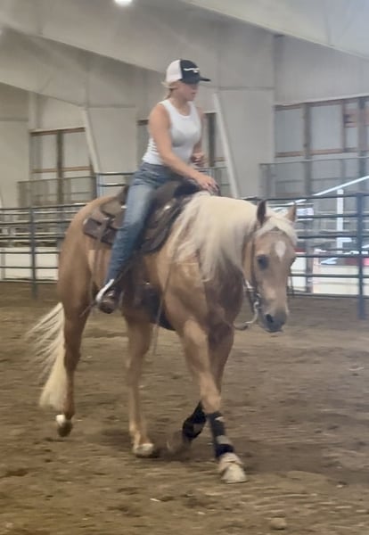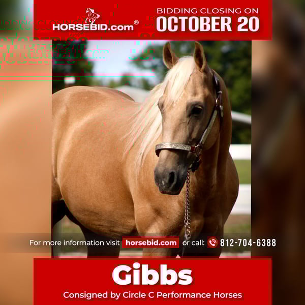 ♦️ 𝐭𝐡𝐞 𝐀𝐌𝐄𝐑𝐈𝐂𝐀𝐍 𝓕𝓪𝓵𝓵 𝓒𝓵𝓪𝓼𝓼𝓲𝓬 ♦️ Happening now thru MONDAY | OCTOBER 20th - Available EXCLUSIVELY on HorseBid's website! For more details and to register visit: www.Horsebid.com CONSIGNOR CONTACT: Circle C Performance Horses 812-704-6388 LOCATION: Borden, IN BREED: AQHA REGISTERED: Yes REGISTERED NAME: Gold San Lena Bar COLOR: Palomino HEIGHT: 15.1 AGE: 13 GENDER: Gelding Gold San Lena Bar – 2012 AQHA Palomino Gelding (JC Flashbac x Slip Down Lena daughter) Gibbs is the definition of versatility in the American Quarter Horse. Sired by Multiple World & National Champion JC Flashbac (by Sailing Smart) and out of a daughter of Slip Down Lena, his pedigree speaks for itself—yet it’s his proven ability to excel in nearly every setting that sets him apart. Whether it’s a ranch show, cross-country course, parade, or teaching a first-time rider to canter, Gibbs adapts seamlessly. In the past two years at our program, he has consistently been the horse we can trust for every job: beginner lessons, competitive ranch classes, reining, horsemanship, or carrying the American flag in a rodeo arena. Show & Performance Highlights: • Successfully shown in ranch riding, ranch rail, reining, western riding, trail, horsemanship, halter, hunt seat, equitation, and pleasure. • Competed in barrels, poles, and fun show events. • Proven parade and rodeo queen contest horse—traffic, sirens, and crowds do not bother him. • Suitable for both amateurs and youth riders with the training and temperament to match. Temperament & Rideability: • Exceptionally gentle, forgiving, and confidence-building for novice riders. • Talented enough to keep advanced riders challenged with spins, lead changes, and versatility across disciplines. • Reliable whether ridden daily or after several weeks off—no prep or lunging required. • Excellent trail partner: non-spooky, steady, and sure-footed. Manners & Ground Skills: • Stands tied, trailers quietly, and settles easily at new venues. • Respectful on the ground, easy for grooming, tacking, farrier, and vet care. • Seasoned traveler for shows, parades, and camping trips. While Gibbs is as close to the complete package as they come, it is worth noting he is a cribber. Gibbs is the kind of gelding that elevates any program: a proven competitor, trusted teacher, and all-around partner who embodies the versatility and heart of the Quarter Horse.