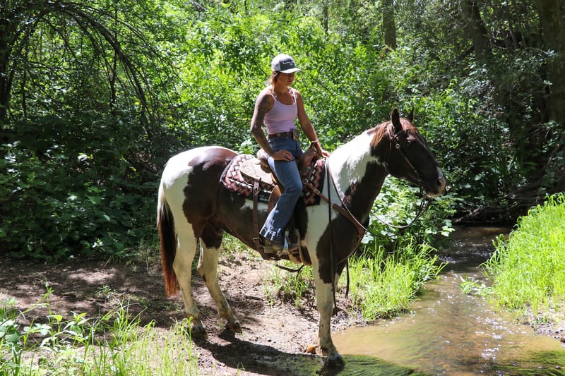 ONLINE AUCTION Place your bids at www.PlatinumEquineAuction.com Starting Bid $3500 Auction ends June 9th, 2024 Need a new saddle? Check out White Rock Saddles on our website or Facebook! Meet Badger: The Perfect Blend of Beauty and Brains! He is a grulla paint, 12 year old that stands 15.1 hands. Are you in search of a horse that combines stunning looks with an exceptional temperament? Look no further! Badger is a magnificent equine that will not only turn heads with his striking appearance but will also impress you with his intelligence and versatility. This remarkable horse has been a reliable partner in a variety of settings and is ready to bring joy and adventure to his new owner. Badger is an absolute gentleman on the trails. He is as sure-footed as they come, confidently navigating through any terrain you can imagine. Whether you’re traversing muddy paths, crossing creeks, splashing through ponds, or tackling rocky landscapes, Badger handles it all with ease. He goes up and down hills effortlessly, making him the perfect trail companion for any rider. Plus, he has a genuine love for playing in the water, making every trail ride an adventure. In the arena, Badger is a true expert. He knows his leads, has a fantastic stop, and offers a smooth, easy trot that makes riding a pleasure. Whether you’re practicing for a competition or just enjoying a leisurely ride, Badger’s responsiveness and skill make him an excellent partner. His familiarity with obstacles like tarps, smoke bombs, and flags means he remains calm and composed. Badger has been exposed to an array of environments and situations, making him incredibly adaptable. He’s accustomed to the hustle and bustle of heavy equipment, dogs, quads, dirt bikes, and bikes. Traffic, honking horns, and even the roar of semi-trucks do not phase him. Badger has been ridden through city streets and neighborhoods, calmly handling rushing cars, curious pedestrians, and kids playing basketball. His nature makes him an excellent choice for riders who want to explore both rural and urban settings. Badger has a special fondness for children and loves the attention they give him. He is a perfect gentleman around kids, making him an ideal family horse. His patient and gentle demeanor ensures that even the youngest riders can take him for a spin. He’s been used for lessons and handles them with grace. Badger is as easy-going as they come. His “in your pocket” personality means he loves to be around people and enjoys being loved on. He’s a joy to ride and be around, making every moment spent with him a pleasure. Whether you’re a seasoned rider or a novice, Badger’s sweet nature and cooperative spirit make him an ideal companion. He is also UTD on shoes, worming, shots and in shape and ready to hit those trails. He loads in a trailer with ease, stands tied, goes alone or in a group, stands to be saddled, bathed, fly sprayed, for farrier. Is great with other horses or alone , stall or pasture, he’s easy to catch as well. Badger is a rare find – a horse that combines beauty, brains, and an exceptional temperament. His versatility and reliability in a wide range of settings make him a standout choice for anyone looking for a truly special equine partner. Don’t miss the opportunity to make Badger a part of your life. Contact KW Ranch 530-852-2032 to meet this extraordinary horse we call Badger! ONLINE AUCTION Place your bids at www.PlatinumEquineAuction.com Starting Bid $3500 Auction ends June 9th, 2024 Need a new saddle? Check out White Rock Saddles on our website or Facebook!