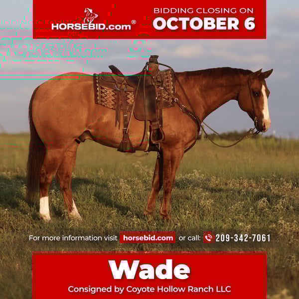 🍂 𝓐𝓾𝓽𝓾𝓶𝓷 𝑨𝑳𝑳 𝑺𝑻𝑨𝑹 𝑳𝑰𝑵𝑬𝑼𝑷 🍂 Happening now thru MONDAY | OCTOBER 6th - Available EXCLUSIVELY on HorseBid's website! For more details and to register visit: www.Horsebid.com CONSIGNOR CONTACT: Coyote Hollow Ranch LLC 209-342-7061 LOCATION: Mount Vernon, TX BREED: Quarter Horse REGISTERED: No REGISTERED NAME: Wade COLOR: Dun HEIGHT: 15.3 AGE: 13 GENDER: Gelding Meet Wade, a handsome 1,350-pound Quarter Horse gelding with the kind of resume and personality everyone is looking for. Wade has spent his life as a dependable ranch partner, doing every job asked of him and doing it with a good attitude. He’s branded calves, doctored yearlings out in the big pastures, sorted cattle in the corrals, and even helped load trucks. No matter the task, Wade stays steady, reliable, and honest every single time. Beyond ranch work, Wade is a seasoned trail horse who’s seen it all. He’s carried riders through the rugged mountains of Colorado, the wide-open Texas flatlands, and everything in between. He’s careful-footed, confident outside, and safe for absolutely anyone to ride—whether you’re an experienced hand or a beginner just looking to enjoy a day in the saddle. Wade is also patterned on the head side and has been hauled to low-number jackpots. He makes a solid, consistent help horse and knows his job well in the arena, giving you the same effort every run. On the ground, Wade is as easy as they come. He’s gentle to groom, stands quietly for saddling, loads without a fuss, and is always easy to catch—often the first to greet you in the pasture. His willing disposition and steady nature make him the kind of gelding you can trust day in and day out, whether you’re roping, ranching, or just out for a trail ride. If you’re looking for a big, good-looking gelding with all the real-world experience, Wade is the kind you’ll be proud to own.