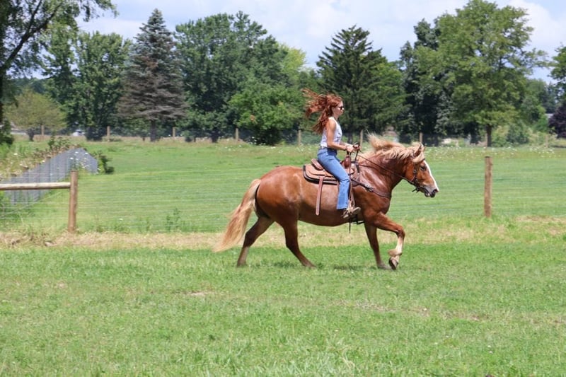 ONLINE AUCTION Place your bids at www.PlatinumEquineAuction.com Starting Bid $3500 Auction ends August 18th, 2024 Need a new saddle? Check out White Rock Saddles on our website or Facebook! Meet Cash! Here he is- big, quiet, middle age, and a gelding!! My phone rings daily for this type! Cash is the steady eddy, quiet, dependable, and safe mount that everyone is searching for. He is 16 hands & 12 years old. His mom is a haflinger and his dad is a Belgian draft. Cash is a handsome chestnut gelding with a long, thick blonde mane and tail. He is the type who is built to last. He is correct in every way; good bone structure, clean legs, proportionate body, and strong hooves. Cash is a joy to ride and is easy to get along with. He walks, trots, and canters on a loose rein and has wonderful breaks. Say “whoa” and he tucks in his hind end and comes to a complete stop. Cash has a nice steady way of going and is very agile for a horse of his size. He is generally in no rush to get anywhere. Cash takes his time and enjoys the views. Cash rides both English and western. He has done countless of trail rides and has been hauled out to all the state and to metro parks all in Michigan. This fall Cash did a few hunter paces with some of our staff members. He has seen plenty of miles on the dirt roads, open fields and deep woods. Water, wildlife, bikes don’t phase him at all. He jumps right around in true hunter fashion, slow and steady. He pops his knees up yet won’t shy from anything. He has lots of fancy buttons for the more advanced riders. He knows how to side passing, leg yield, pivoting, turn on the forehand and haunches in. He has competed under the lights in a grand stand performance in front of hundreds of people while keeping his cool. He has also completed our de-sensitization program with flying colors; flags, tarps, pool noodles, opening gaits roping- he’s seen it all. Cash has also been driven! He’s pulled out carriage in busy cities and just around the farm. We think Cash would do well as a lesson horse, family horse, trail horse, or a show horse. Cash is a horse anyone can ride, love, and enjoy! Located in Howell MI 48855. Call or text Ellesse Schwartz 248-390-6831 for more info. ONLINE AUCTION Place your bids at www.PlatinumEquineAuction.com Starting Bid $3500 Auction ends August 18th, 2024 Need a new saddle? Check out White Rock Saddles on our website or Facebook!