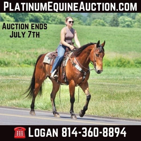 ONLINE AUCTION Place your bids at www.PlatinumEquineAuction.com Starting Bid $3500 Auction ends July 14th, 2024 Arrow is a 12 year old 15.2hh bay gelding. Arrow has been used around the feed lots, to rope cattle and even give guided trail rides. Arrow is a one of a kind gelding. Ride him in a hackamore, halter and lead, or a bridle and he’ll take care of you! He would make the best kids step up rope horse! He’s being rode by a 13 year old girl. He has been there done that in the roping pens! Leave him sit or use him everyday and he’s the exact same horse every time. He is in your pocket and very loving. On the trails he will go just about anywhere! He will cross the logs and water with ease! He loves to lead the trail! He will turn out in a pasture with mares and geldings. He will stall perfect too! He is a beautiful mover and will take both leads! Contact Logan Smith 814-360-8894 Located in Jersey Shore Pennsylvania.