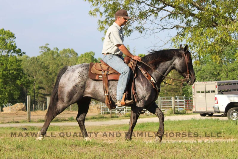 ONLINE AUCTION Place your bids at www.PlatinumEquineAuction.com Starting Bid $3500 Auction ends May 11th, 2025 Need a new saddle? Check out White Rock Saddles on our website or Facebook! Tupac is a grade quarter horse gelding standing 15.1. He is 13 years old and as broke as they come. Horses like Tupac are hard to come by this safe, gentle, handy broke, and a solid 15.1 hands. He has a great personality that anyone can get along with and handle both on the ground and in the saddle. He is broke to ranch work, has an excellent neck rein and crosses his feet the right way when maneuvering in every direction. Tupac is easy to catch, loads easily and is a good boy with his feet as well. He’s quiet on the trails and crosses all you point him to. Chex’s walk/trot/canter is smooth as butter every time, just check him out in the video. We’ve used him to halter break weanlings and catch a few escapees and he handles pressure with ease. He can get up and go when asked and drops his head and goes back to slow as soon as you ask. Great manners in the stall as well as the pasture with both mares and other geldings. There’s truly nothing we’ve thrown at him he doesn’t excel in. Tupac is as close to perfect as they come. Located in Cherryville, NC; can deliver nationwide. He sells 100% sound and safe for anyone to ride. Contact Landon with Maxwell Family Horses 704-689-9035, ONLINE AUCTION Place your bids at www.PlatinumEquineAuction.com Starting Bid $3500 Auction ends May 11th, 2025 Need a new saddle? Check out White Rock Saddles on our website or Facebook!