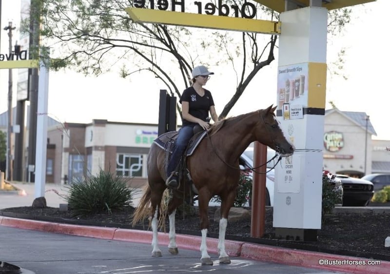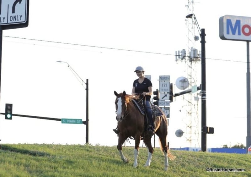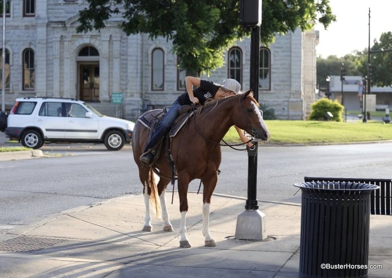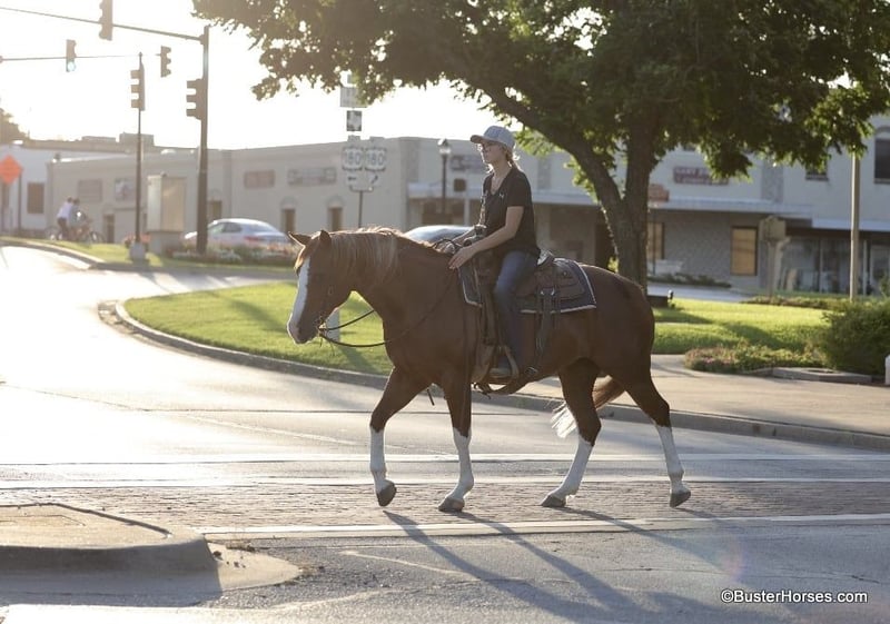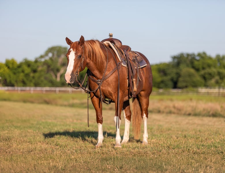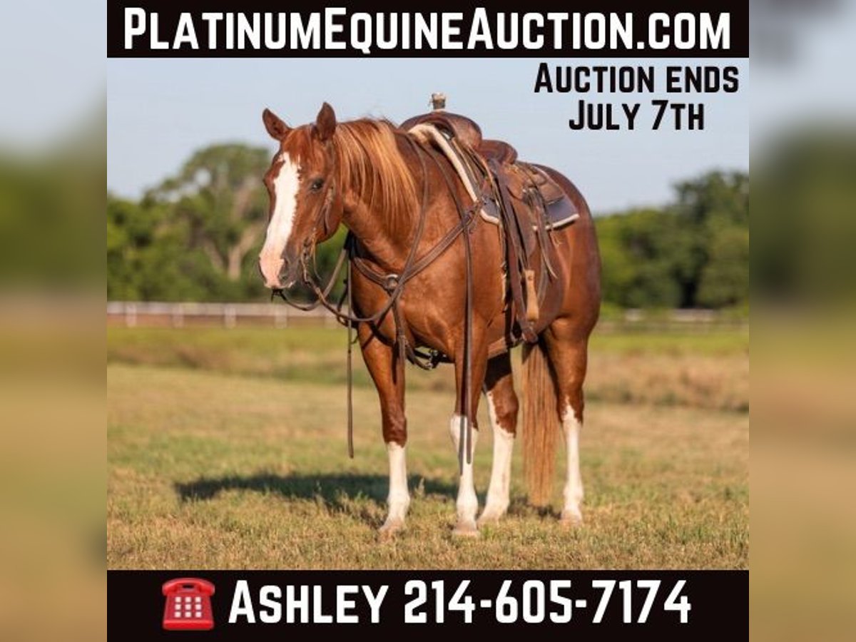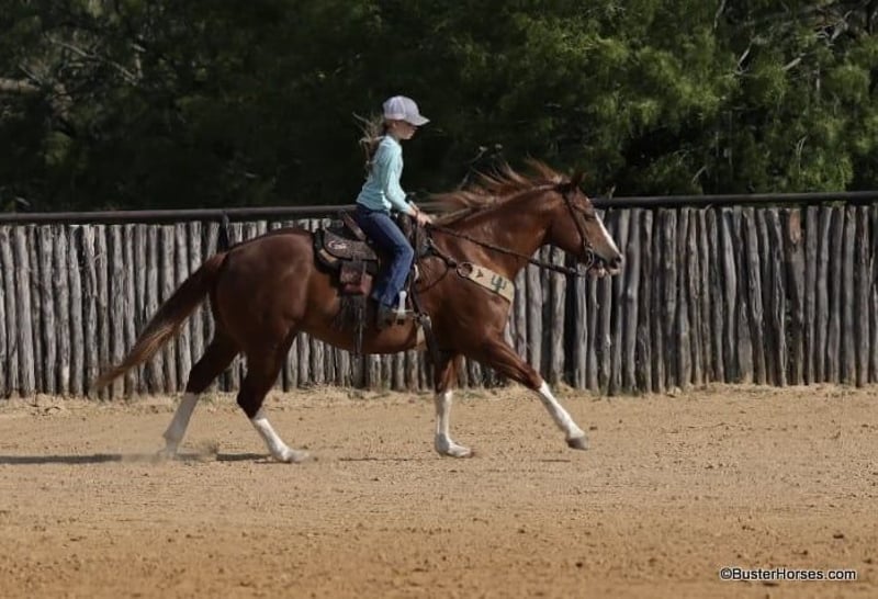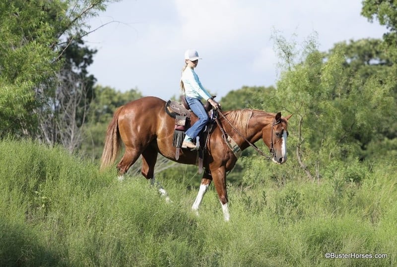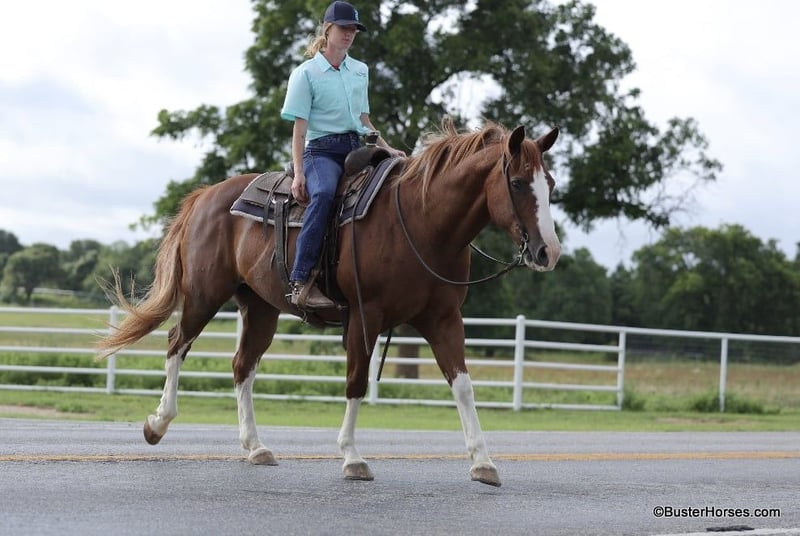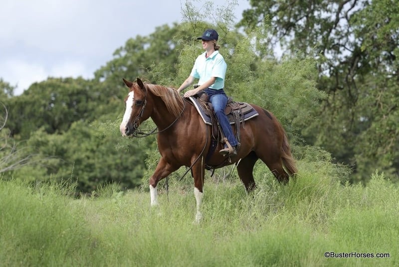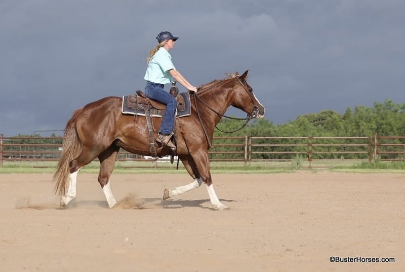 ONLINE AUCTION Place your bids at www.PlatinumEquineAuction.com Starting Bid $3500 Auction ends July 7th, 2024 Need a new saddle? Check out White Rock Saddles on our website or Facebook! “Lucy” – 14.2H, 13 year old grade sorrel quarter horse mare… Lucy is literally build like a brickhouse!!! They don’t get much stouter made then this mare – and she’s shapely made and absolutely striking with all four stocking legs and a blaze face! Lucy has been primarily pleasure and trail ridden the past 5 years with a senior rider. She is extremely laid back, gentle, and as uncomplicated to ride as they come – she is one you have to peddle a little at a trot and lope, and has way more “whoa” than she has go. This is the type of horse we get tons of calls about to just be a family pet, or turned out at a second home to enjoy on the occasional weekend. Lucy knows her job and is happy to go for a ride once a year or once a week, she is easy and pleasant to be around. She stands statue still extremely patiently for mount and dismount, even if you need a little extra time and are a little sloppy and uncoordinated getting on, Lucy contently stands there waiting for you to get settled before taking a step off. This mare is a breath of fresh air and very relaxing and easy to be around. Rides easily out alone and has been on many rides around the place, trail rides, or rides to town alone – she enjoys the time and is happy to go where-ever you want to go. Has a nice easy walk, trot, and lope on a loose rein, catches both of her leads easily and has a good quick stop on whoa. This would be a fun entry level local show horse, 4H horse, or a good mount to get your feet wet at the local stock horse or ranch horse shows. Super easy keeper – looks like this coming straight out of living outside with the cows! She is also happy inside, loves the attention and loves being spoiled and kept in the barn. Happy turned out with others, lives with a small group of mixed horses now. Always the first up to you sticking her head in the feed bucket or the halter – very sweet and overly friendly. Good ground manners, easy to bridle, saddle, groom, stands dead quiet and patiently for mount and dismount, bathe, load in the wash racks, hops right on the trailer, and stands patiently. Lucy was just shod this past week and is wearing front shoes, her teeth were also done by an equine dentist last month, she has had her ears treated for ticks, and she was also power packed wormed. She is also good to shoe all around, and has great feet and goes very well barefoot – if her new owner prefers her to be fully show, or to be barefoot – we can have either done prior to her heading to her new home. She will arrive at her new home up-to-date and ready to go to work! We are experienced, knowledgeable sellers, and we can help with quickly arranging affordable shipping to any buyer’s location – we have experience shipping worldwide – including regularly to Hawaii, Canada, Mexico, Europe, and South Africa. Call Ashley at 214-605-7174 GO TO BusterHorses DOT com for more videos! ONLINE AUCTION Place your bids at www.PlatinumEquineAuction.com Starting Bid $3500 Auction ends July 7th, 2024 Need a new saddle? Check out White Rock Saddles on our website or Facebook!