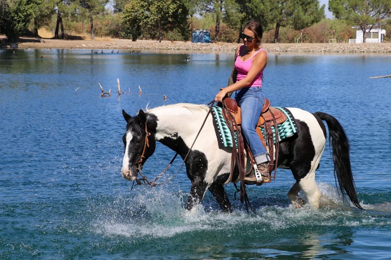 ONLINE AUCTION Place your bids at www.PlatinumEquineAuction.com Starting Bid $3500 Auction ends October 20th, 2024 Need a new saddle? Check out White Rock Saddles on our website or Facebook! Introducing The Ultimate Trail Warrior!!! Meet Domino, the 13 year old 14.2 hand as cute as a button and sweet as a peach! He’s the perfect trail horse that everyone dreams of having in their barn. Domino is fearless and reliable on the trails—point him at any obstacle, and he’ll confidently cross it, whether it’s a swaying bridge, logs, creeks, or steep hills. He’s a joy to ride, with a quick, ground-covering walk that keeps up with any horse. Domino is super sure-footed and careful, especially on tricky terrain. He takes his time on hills, moving steadily with your hand down on his neck, never rushing. He’s been exposed to all sorts of obstacles, from pool noodles to teeter-totter bridges, and he’s unfazed by anything you throw at him. Not only is he a trail star, but Domino also shines in the arena. He knows his leads, has a solid stop, spins, side passes, and responds lightly to your cues. He can collect his head when asked and is barefoot, doing wonderfully without shoes. Domino is easy to handle—he loads, ties, bathes, stands to be saddled, and is great for the farrier. This sweet, reliable horse is ready to be your next adventure partner! Please contact Kamryn at KW Ranch 530-852-2032 Located in Pleasant Grove, CA. ONLINE AUCTION Place your bids at www.PlatinumEquineAuction.com Starting Bid $3500 Auction ends October 20th, 2024 Need a new saddle? Check out White Rock Saddles on our website or Facebook!