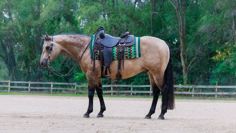 ♦️ 𝐭𝐡𝐞 𝐀𝐌𝐄𝐑𝐈𝐂𝐀𝐍 𝓕𝓪𝓵𝓵 𝓒𝓵𝓪𝓼𝓼𝓲𝓬 ♦️ Happening now thru MONDAY | OCTOBER 20th - Available EXCLUSIVELY on HorseBid's website! For more details and to register visit: www.Horsebid.com CONSIGNOR CONTACT: Michels Performance Horses LLC 574-350-4044 LOCATION: Cottage Grove, MN BREED: AQHA REGISTERED: Yes REGISTERED NAME: Wimpys Flashy Jac COLOR: Buckskin HEIGHT: 14.3 AGE: 15 GENDER: Gelding Meet Wimpys Flashy Jac, affectionately known as Flashy — a stunning dappled buckskin AQHA gelding who stands at 14.3 hands and turns heads everywhere he goes. An own son of the legendary Wimpys Little Step, Flashy boasts an impressive $58,511 in NRHA earnings, proving his natural athleticism, trainability, and heart in the show pen. His elegant color, coupled with his flawless conformation and stylish way of moving, makes him as beautiful to look at as he is to ride. Flashy is a finished reining horse through and through, confidently performing all the maneuvers with ease — from deep, smooth stops to effortless spins and flowing circles. Despite his proven show record, he’s the kind of horse that doesn’t require constant tuning or a professional program to stay sharp and sound. Whether you’re preparing for your next pattern or simply enjoying a relaxing ride, Flashy gives his rider the same consistent, willing effort every time you swing a leg over. What truly sets Flashy apart is his incredible temperament. He’s been trail ridden, handled by toddlers and adults alike, and always brings his quiet, gentle personality to every setting. He’s the ultimate example of a versatile, trustworthy gelding — fancy enough for the show pen, but laid-back enough for a casual trail ride. Horses like Flashy don’t come around often; he’s the perfect combination of elite performance bloodlines, proven success, and everyday reliability that makes him a barn favorite wherever he goes.