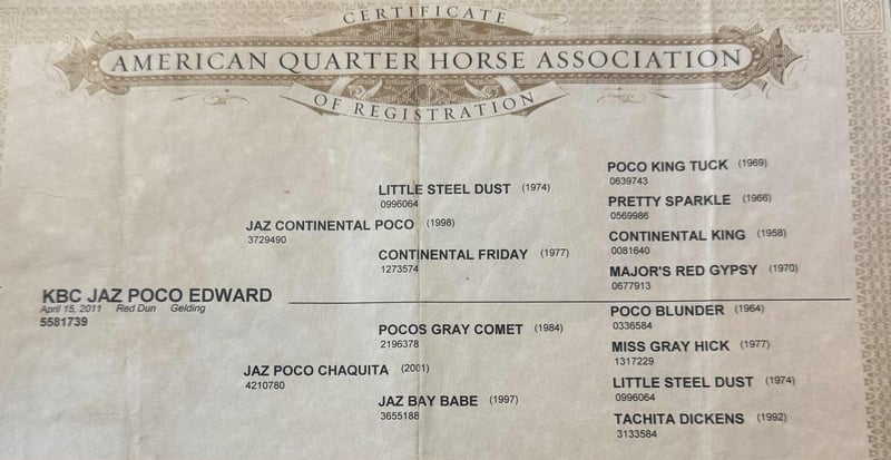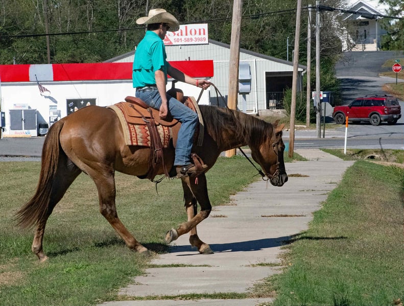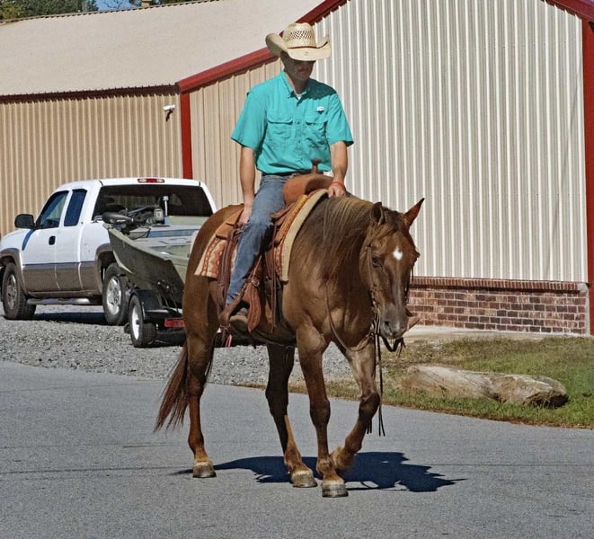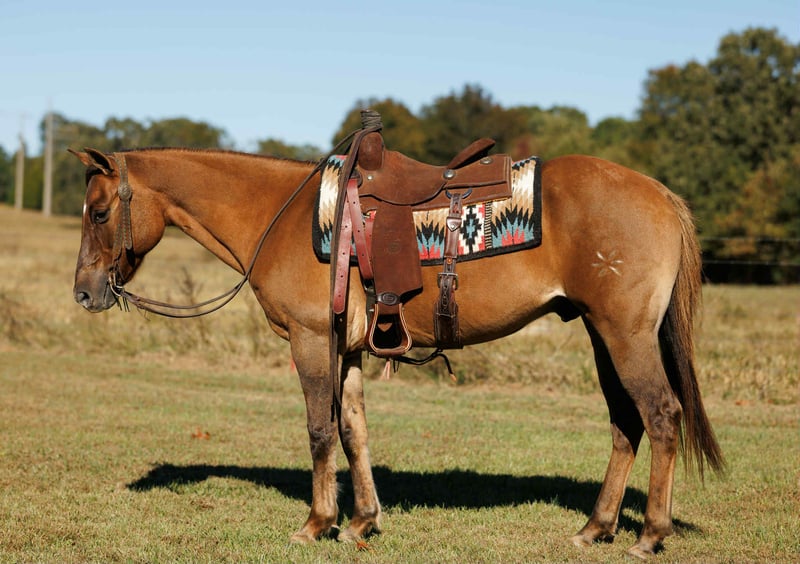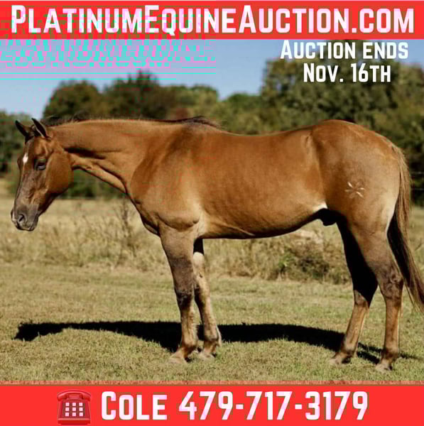ONLINE AUCTION Place your bids at www.PlatinumEquineAuction.com Starting Bid $3500 Auction ends November 16th, 2025 Need a new saddle? Check out White Rock Saddles on our website or Facebook KBC JAZ POCO EDWARD, affectionately known as “Simba” is a 14 year old, reg AQHA, red dun gelding, standing 14.3hh, that is the kind that turns heads everywhere he goes! He is a true standout with plenty of shape, depth, and muscle, all wrapped in that rich red dun color with eye-catching highlights. He’s built the way one should be — straight, balanced, and correct — with the look of a true using horse backed by a solid foundation pedigree. He carries those old-school, proven bloodlines known for bone, brains, and heart, and he lives up to every bit of it. Simba has been used in the sale barn to push and pen cattle, load trucks and gathered cattle in rough country. He is started tracking the dummy, pulls tight to the horn, and handles a rope with ease and confidence. In the arena, he’s soft, supple, and stays collected with a good stop and a nice, correct way of traveling. He has also been ridden many, many miles outside on the trails. Thick brush, water, rocks, uneven terrain are no issue for Simba. He has been on overnight camping trips and stands tied quietly to the trailer. Simba takes everything you throw at him in stride like the seasoned professional that he is. He goes wherever he is pointed with ease and the upmost confidence. Rides out alone or in a group without issue. Simba stalls well or enjoys turn out time with other horses in the pasture, he is friendly and gets along well with the herd. He is honest, dependable, and always willing. Simba is the same every ride. This is the kind of gelding that you can truly enjoy everyday! For more info call Cole with Diamond L Horses at 479-717-3179 Located in Quitman, AR. ONLINE AUCTION Place your bids at www.PlatinumEquineAuction.com Starting Bid $3500 Auction ends November 16th, 2025 Need a new saddle? Check out White Rock Saddles on our website or Facebook