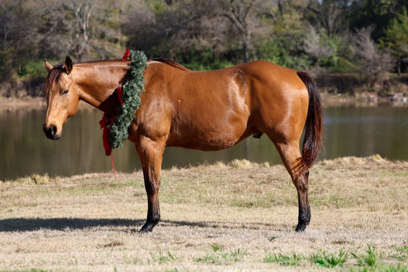 🎄𝐓𝐇𝐄 𝑯𝒐𝒍𝒊𝒅𝒂𝒚 𝐂𝐋𝐀𝐒𝐒𝐈𝐂🎄 Happening now thru MONDAY | DECEMBER 15th - Available EXCLUSIVELY on HorseBid's website! For more details and to register visit: www.Horsebid.com CONSIGNOR CONTACT: MM Ranch 469-318-1902 LOCATION: Forney ,TX BREED: APHA Quarter Horse REGISTERED: Yes REGISTERED NAME: GONNA BE BLUE COLOR: Buckskin HEIGHT: 15 AGE: 14 GENDER: Gelding Dewey is a registered buckskin gelding!!! Yes a registered 14 yr old all around ranch gelding!!! He’s got that color everyone loves. Registered name is “GONNA BE BLUE”. He is 15 hands tall. You don’t see them like this everyday. 👉🏼 This is a classy, well broke, and smart horse. We cannot express enough how great he has been for all riders that have rode him. He simply makes Horse Riding FUN. 🌾You can catch Dewey in 100,000 acre pasture. He will walk right up to you. This is a kind very willing to please type that anyone can ride and get along with. He will do anything you ask him to do. From beginner to advanced. He has one of those willing to please type attitudes. He is always happy and ready to do whatever. He is so easy to handle and be around. 🐂 He has been used on the ranch to check cattle, fences, rope and doctor sick calves. He is a tried and true solid ranch horse. With all the fancy buttons. You can even back him in the box and rope off of him. He has a lot of cow sense and ability. He can go do anything you want him to do. And the best part is he super quiet and gentle. And stays that way year around. 🦖Throw the husband, the kids, or your non-horsey friend on him and know they will be safe and have a great ride!!!! After a long day at work you can home and just enjoy riding him around the house. Or load him up and take him on a weekend camping trip through the trail or rough, rocky terrain, and camp out. He does perfect on overnight camping trips. He requires no prep, just load up and go! He crosses water, bridges, he has been around exotic animals. He will go out alone on trails too. Not at all barn soured or buddy soured. Absolutely nothing brothers this horse. He is as laid back as they come. 💥Absolutely no buck or bad habits. Don’t let this amazing gelding get away from you if you are wanting something dependable. ⚡️He sells 100% safe and sound in every way. 🌎 We can help with making shipping arrangements.