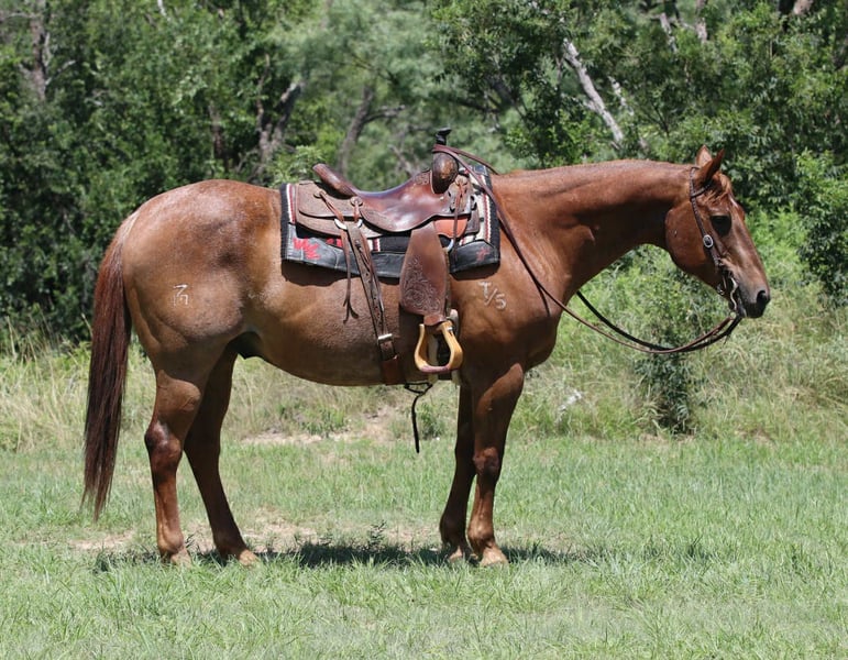ONLINE AUCTION Place your bids at www.PlatinumEquineAuction.com Starting Bid $3500 Auction ends November 16th, 2025 Need a new saddle? Check out White Rock Saddles on our website or Facebook Before you scroll past because he’s just a plain red roan, see if he checks these few boxes for you?⬇️ ◻️An absolutely Bombproof, gentle kind soul for any age from 3-93? 🔳 A horse that is handy enough but calm enough to do any job or anything you ask of him? 🔲The ultimate kids horse that they can have hours of fun with? ◻️A finished rope horse that is perfect for someone wanting to learn or just someone wanting to rope on the weekends? 🔳The perfect gelding to ride down the trails all day long without any trouble whatsoever? 🔲A great lesson horse? Or Drill team? Maybe a sorter? To go ranch on? Paco may be just a plain roan horse, some people won’t even look his direction because he’s not flashy colored. 90% of the people looking for a horse right now, are in fact looking for something exactly like him. Paco is GRADE 14 years old, a perfect age, 15hh tall, the perfect height! He is put together correctly and if he even checks one of the boxes mentioned for you, I encourage you to please check him out! He is a very gentle horse and on a scale of 1 to 10, he’s a -2 on quietness, gentleness and temperament. He is one of those all around geldings that are forgiving enough for those complete beginner riders but he is also fun for an advanced! You can’t go wrong with him for your family! Paco is very easy, he walks, trots, lopes and side passes very well! He’s been used at countless rodeos as a pickup horse and a head horse! We can’t say enough good things about him, and believe it or not, there is NOT one bad thing we could say. He is a finished head horse, established ranch horse, the very best trail horse and the perfect addition to your family. I could talk about him all day long, or you could come see him for yourself! We are located in Lipan Texas but have reputable haulers that go all over the country, including Hawaii and Canada. Give me a call or text and I’d be happy to answer any questions Makenna Hartzell 817-659-3778 ONLINE AUCTION Place your bids at www.PlatinumEquineAuction.com Starting Bid $3500 Auction ends November 16th, 2025 Need a new saddle? Check out White Rock Saddles on our website or Facebook