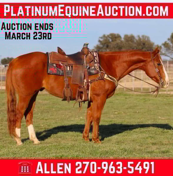 ONLINE AUCTION Place your bids at www.PlatinumEquineAuction.com Starting Bid $3500 Auction ends March 23rd, 2025 Need a new saddle? Check out White Rock Saddles on our website or Facebook! Louis is everything anyone could want and more! This gelding has the most heart and want to please then anything! He will never quit you and does anything and more of what he is asked for. Louis 14 years old, stands 15.1hh tall and weighs 1300lbs. He is put together correct and always looks outstanding. He has a gorgeous mane and very thick tail. Louis is very easy to handle, stands for everything from shoeing to saddling. Louis is an absolute DREAM to trail ride, jumps right into the water like a fish! He loads like a dream and hauls good with other horses and cattle. He stays turned out with 4 other geldings and a mini pony, gets along good with mares as well and does fine in a stall. He does great tied to the trailer and takes in all the sights and noises of new places. We have used him as our back up and he handled every run like a pro. On the head side, you couldn’t ask for a more versatile gelding. He has been rode by everyone from a #8 to a #3 and adjust to every single different roper. Louis has an outstanding move on and faces quick and snappy. He has a pretty show horse run/move with the rodeo horse quickness. He stays very light in the face and a pro in the box. We have breakawayed some on him as well. Louis is pretty enough, and classy enough to go to the show pen as well and would be great at that as well. Louis came out of the north, Canada, and is strong and athletic. We couldn’t ask for a more perfect horse and it has been a very hard decision to part with him. We absolutely encourage any one to come try and see how great he is for yourselves but we are also able to arrange shipping anywhere from Hawaii to Canada and any state in the U.S. He is located in Lipan Texas Please Call or text A&L Horses Allen 270-963-5491 for more information. ONLINE AUCTION Place your bids at www.PlatinumEquineAuction.com Starting Bid $3500 Auction ends March 23rd, 2025 Need a new saddle? Check out White Rock Saddles on our website or Facebook!