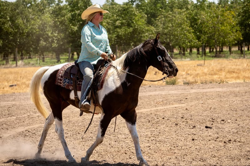 ONLINE AUCTION Place your bids at www.PlatinumEquineAuction.com Starting Bid $3500 Auction ends August 18th, 2024 Need a new saddle? Check out White Rock Saddles on our website or Facebook! Checkers is a 13-year-old black and white paint gelding standing at 15.1 hands. With his gentle demeanor and fun ride, he’s ready for a new adventure! This barefoot gelding is up-to-date on vaccines, dewormer, and farrier work. Checkers excels in a variety of settings: beach, trail, obstacles, and arena. He is adaptable for both western and English disciplines and would shine as a cute hunter/jumper, effortlessly flying over cross rails. He rides well in a junior cow horse bit or a snaffle and handles the bit comfortably, despite a few crooked teeth. He moves off of leg with ease and rides quiet. In the arena, Checkers walks, jogs, and lopes smoothly and has a nice, responsive stop. While he can be a bit anxious when tied to the trailer initially, he quickly settles. He will jump in any trailer you point him at and haul with no issues to new places! He has begun tracking the roping sled and shows significant potential with the right person. Located in Lodi, CA, we offer various transport options. For more information or to arrange a visit, call Ashley O’Brien 209-765-5095. Don’t miss out on this exceptional gelding. ONLINE AUCTION Place your bids at www.PlatinumEquineAuction.com Starting Bid $3500 Auction ends August 18th, 2024 Need a new saddle? Check out White Rock Saddles on our website or Facebook!
