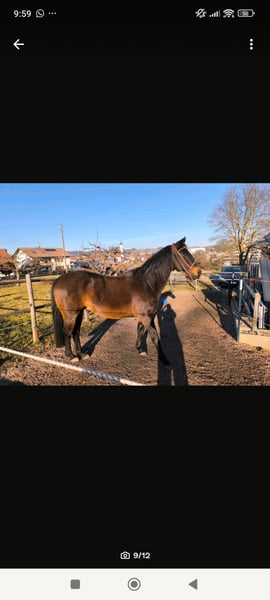 American Quarter Horse Gelding - Born on May 10, 2009 - Height: 14.1 hh (approximately 1.51 m) - Brown - Calm and well-behaved in daily handling - Has a good gait, especially outdoors in the terrain, and is easy to handle; he needs a confident handler who can provide security in all situations - Good with farrier - Knows dogs, farm animals, and everything that comes with a farm environment - Loves children! - Hacks out alone and in groups - Ridden Western in his leisure time - Currently in ground training to rebuild his foundation (this is not due to the horse's fault... I simply don't have enough time to properly retrain him!) - Familiar with being ridden with and without a saddle, as well as with and without bridle - Equipment can be purchased additionally - Preferably offered for outdoor stable turnout - Needs contact with his horse friends! Further information gladly available in person!