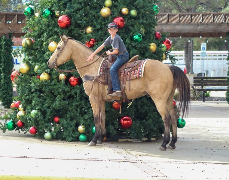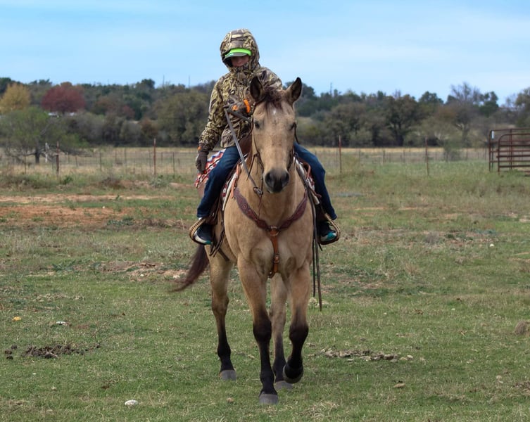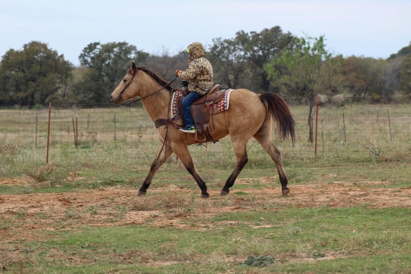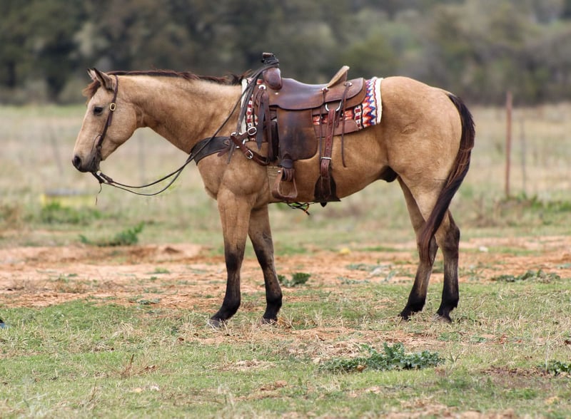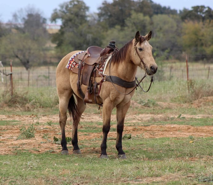 ONLINE AUCTION Place your bids at www.PlatinumEquineAuction.com Starting Bid $3500 Auction ends December 15th, 2024 Need a new saddle? Check out White Rock Saddles on our website or Facebook! Gunsmoke is a 14 year old buckskin gelding standing 15 hds tall . Gunsmoke is Americas favorite color and SAFE for the whole family . He has spent many miles checking fences on the ranch. Gunsmoke has been a ranch horse all of his life he has sorted pairs, roped and doctored sick cattle outside . He is a joy to ride out on the ranch from checking your cattle to fences. We use him weekly penning back cattle at our cow sale. Gunsmoke is absolutely GENTLE for the whole family . He has been rode by our kids daily and is use to just about everything you can imagine. We rode him in our 4th of July parade this year and he was fantastic! Gunsmoke is happy to do anything you ask. He will happily do a days work out on the ranch or just an easy day riding down the trails . He is a point and go type of guy he goes wherever you point him. He’s absolutely user friendly to ride and any level of rider will get along with him. Gunsmoke is one the WHOLE family can enjoy from the adults to the kids. Ones like him don’t come around often . Gunsmoke would sure look great under your Christmas Tree! Contact us with questions you may have about our fabulous guy we will be happy to answer any of them or if you’d like to facetime and meet Gunsmoke. Shipping is available worldwide. Located in Stephenville,TX. Contact Stephenville Cattle Co. Chris 254-459-1046. ONLINE AUCTION Place your bids at www.PlatinumEquineAuction.com Starting Bid $3500 Auction ends December 15th, 2024 Need a new saddle? Check out White Rock Saddles on our website or Facebook!