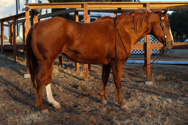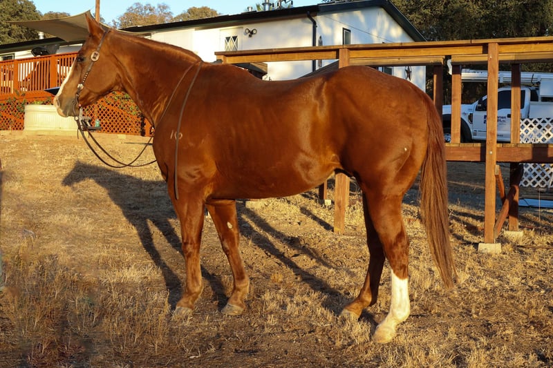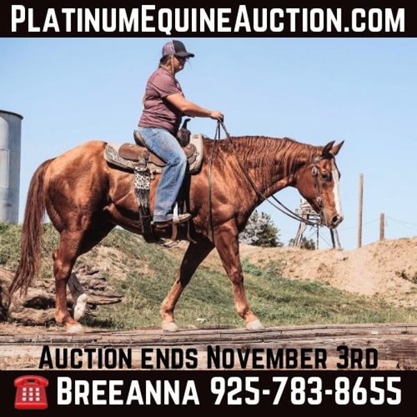 ONLINE AUCTION Place your bids at www.PlatinumEquineAuction.com Starting Bid $3500 Auction ends November 3rd, 2024 Need a new saddle? Check out White Rock Saddles on our website or Facebook! Atlas… I absolutely adore this horse and I know you will too. If you’re looking for a gentle gelding for absolutely anyone. This is your guy. Built like an absolute Mac truck, shy of about 1300 pounds, wearing a size 1 shoe. He is the most stunning red horse you’ll lay eyes on. Please don’t pass him up just because he doesn’t have some fancy color. When you see his big blaze, his chest that is about as wide as one can get and his calm demeanor you’re going to fall in love. Atlas stands about 15.1/2 hands tall I will tape to confirm. Grade 14yo. Do not let his size fool you. He is SOOO easy to ride. So easy to handle. He’s a gentle giant. I would have no hesitation putting anyone from a young kid, to your grandma on him. He’s got the most smooth gaits you’ll ever ride. Slow trot, slow collected lope. Stops nice, turns around. He goes thru anything and everything. He dominated the trail course. With a wealth of trail experience, Atlas has conquered challenging obstacles like steep hills, logs, flags, tarps, confined spaces, bridges, and water crossings. Hes calm and composed in the face of potentially spooking situations, having stood firm while sorting wild horses, dragging them into the trailer and sorting them with a flag. Atlas is the perfect partner for adventurous trail riders who need a reliable and trustworthy companion. I truly cannot say enough good things about him. This gelding is wayyyy more on the woah side, does not have a lot of go. Not a performance speed demon. Great to haul, loads up stands quietly in the trailer, doesn’t move a muscle even on windy roads. Bathes, fly sprays, stands tied for extended periods of time. Tacks up quiet, bridles easy, stands to mount. Great with other horses. He’s a very big horse, he does better with a larger pen or pasture, he’s just too big to stand in a stall and not be able to move around. Great for the farrier, small dogs. I’d love for him to be a first horse, lesson home, trail partner or even for someone that just needs to build confidence he will take care of you every step of the way and wants the love and attention. I was told the previous owner had him since he was 2yo, which would make me only his second owner. If that tells doesn’t tell you something about him I don’t know what will! Proudly offered by cross b horses. Please reach out to me with any questions you have. Cross B Horses Breeanna 925-783-8655 Located in Valley Springs, CA. ONLINE AUCTION Place your bids at www.PlatinumEquineAuction.com Starting Bid $3500 Auction ends November 3rd, 2024 Need a new saddle? Check out White Rock Saddles on our website or Facebook!